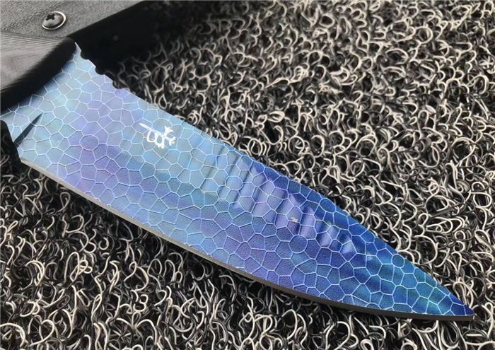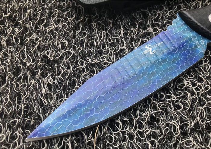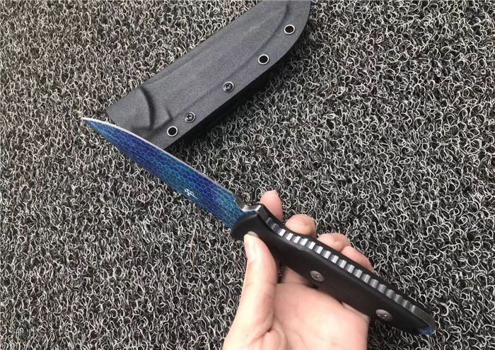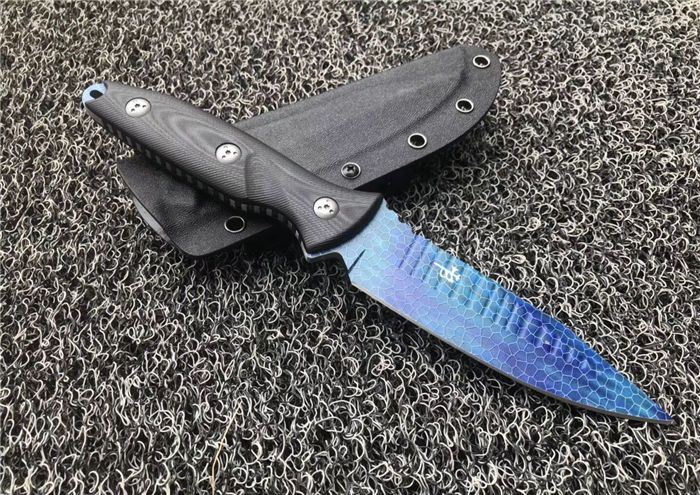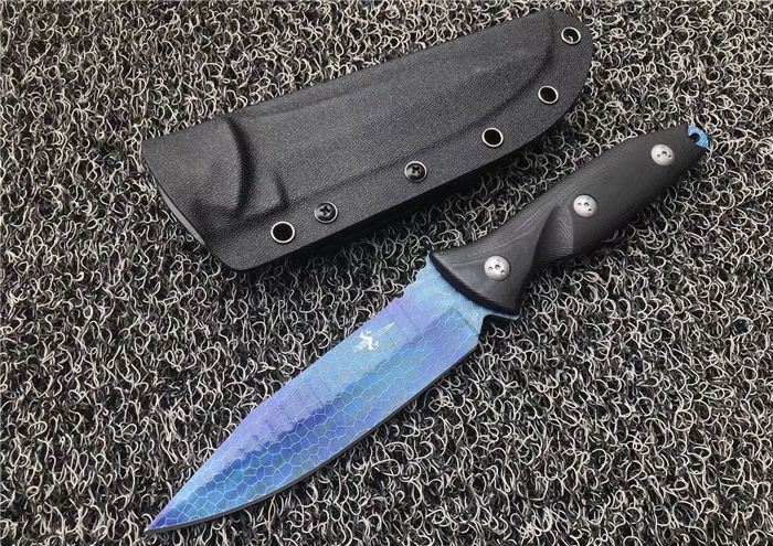 微技术海豹精英彩色小直刀 材质:D2 全长:27cm 刃长:14cm 刃厚:0.5cm 刀重量:300克 表面:彩色镀钛 硬度:60±1HRC(真空热处理) 手柄:黑色G10,CNC 成型 刀鞘:战术K鞘(进口Kydex板)