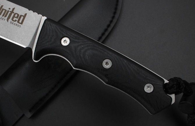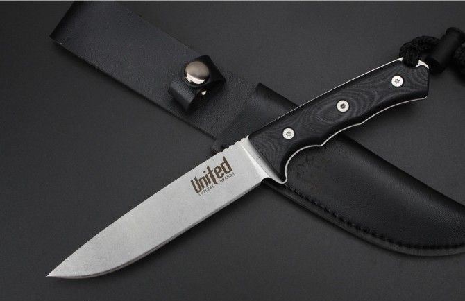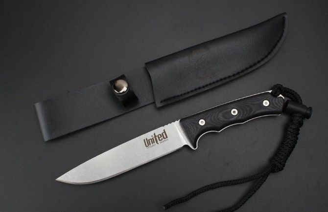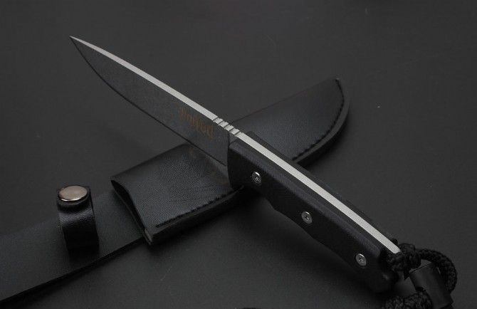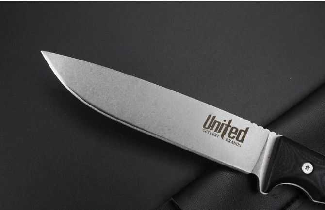 联合刀具轻兵战术匕首 全 长:25.5Cm 刃 长:14.2Cm 柄 长:11.5Cm 刃 宽:3.0Cm 刃 厚:4.2mm 刃 材:D2 重 量:300克毛重 硬 度:60HRC 表 面:石洗 柄 材:一体钢+G10柄 锁 型:定锁 其 他:配仿皮套