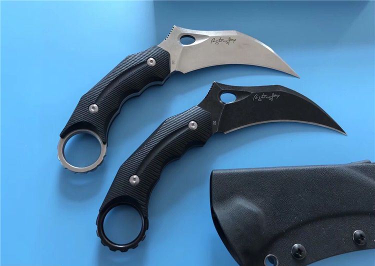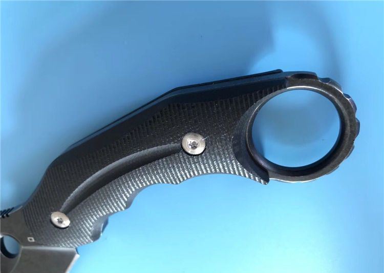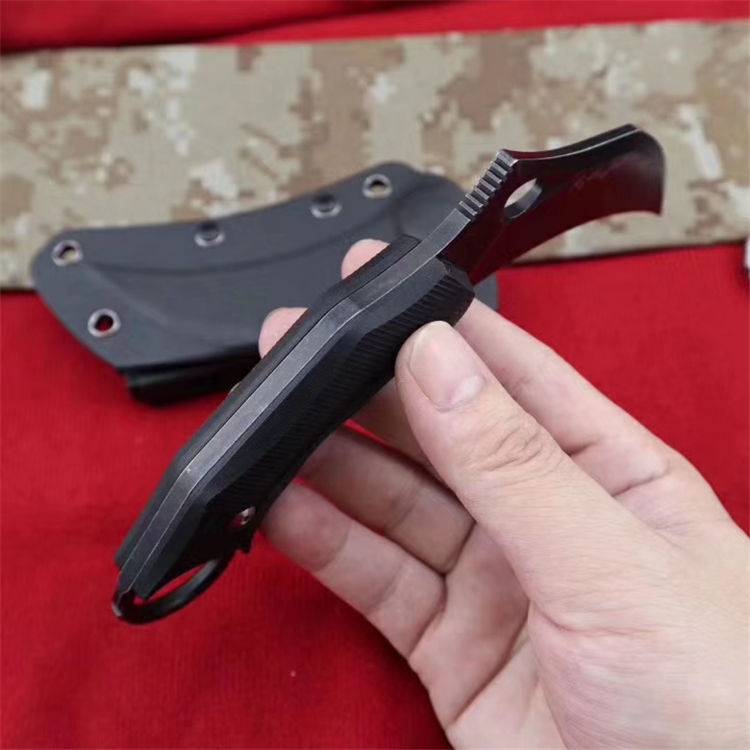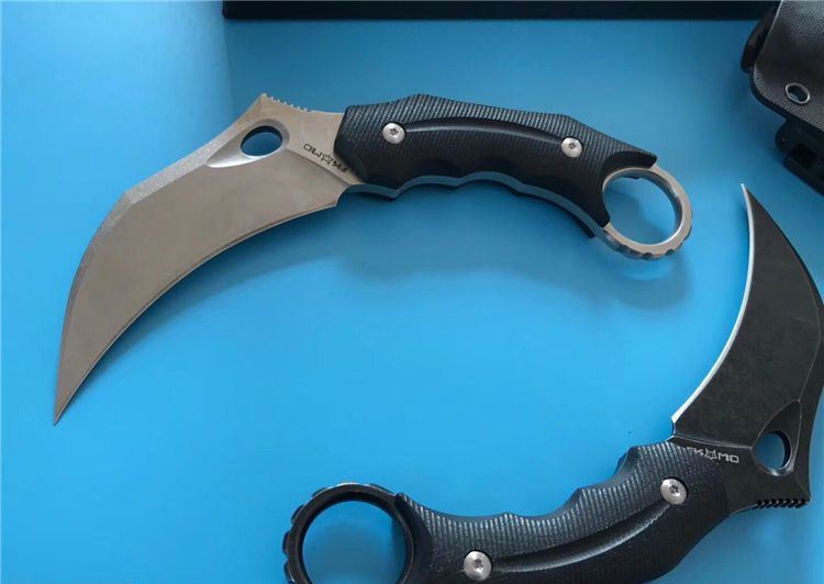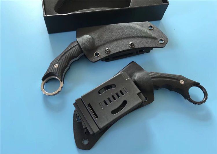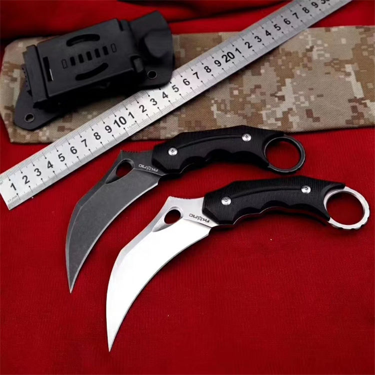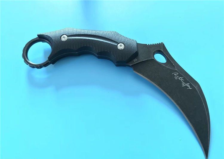 狐狸FOX响尾狐爪刀 全 长:18.5cm 刃 长:9cm 柄 长:9.5cm 刃 宽:3.8cm 刃 厚:0.45cm 刃 材:D2钢 重 量:200(单刀) 硬 度:60--61HRC(真空油冷热处理) 表 面:石洗和沧桑石洗 柄 材:黑色G10 其 他:K鞘和礼品盒