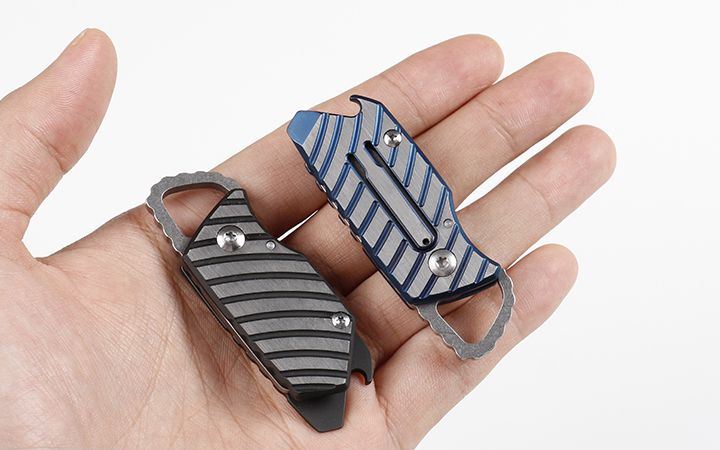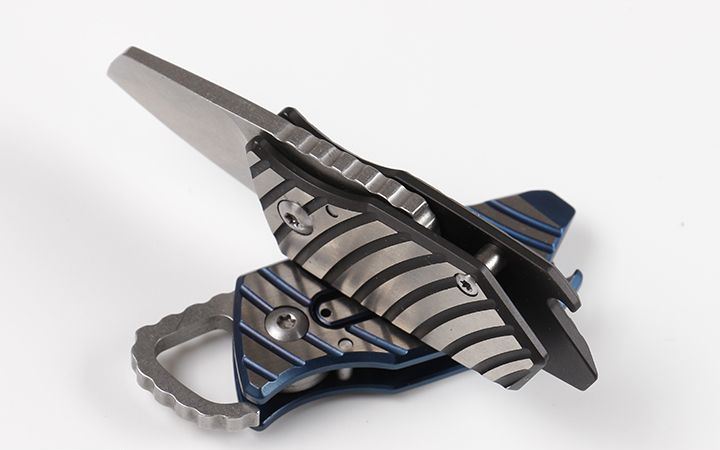 荧火虫迷你折刀 全 长:8.2cm 刃 长:3.2cm 柄 长:5.0cm 刃 宽:2.0cm(最宽处) 刃 厚:3.6mm 刃 材:优质D2 硬 度:60-62HRC 刀 柄:钛合金(表面经真空镀钛处理) 表 面:丝光+(黑钛和灰钛) 锁 定:钢珠定锁 重 量:75克(含包装) 备 注:配硬纸盒和铁盒 其 他:适用户外,可以在挂匙扣