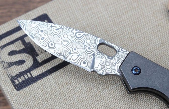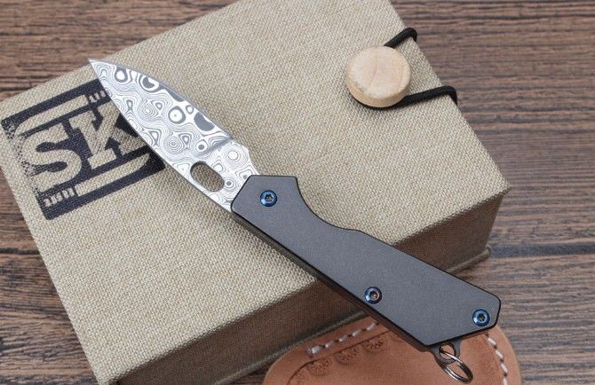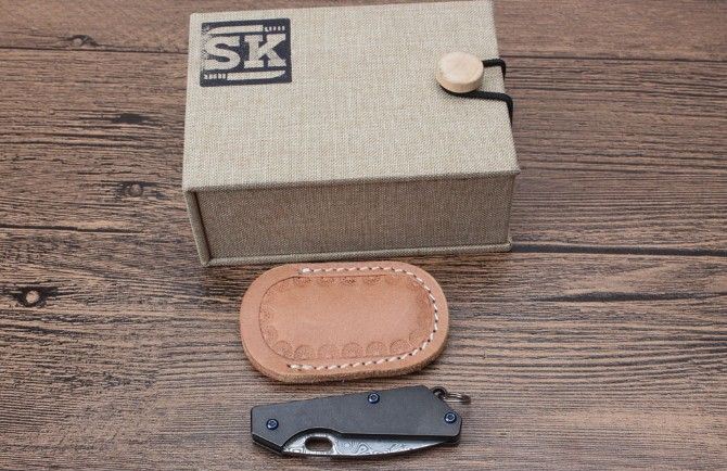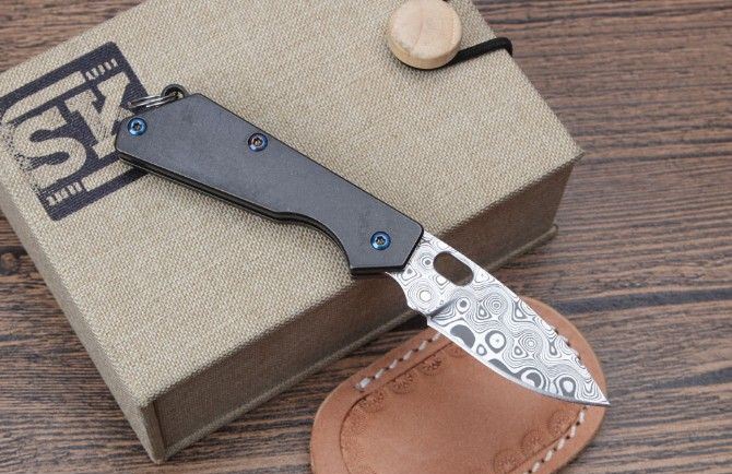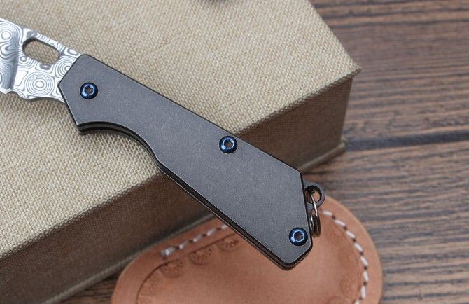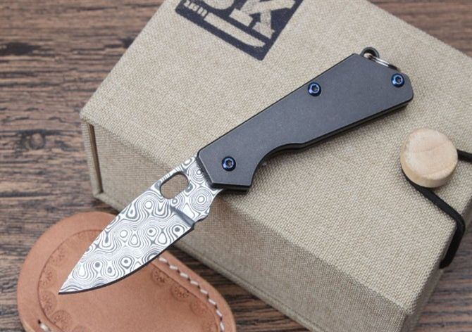 迷你挺进者瑞粉大马士革匙扣折刀 全长:11.0cm 刃长:4.6cm 柄长:6.2cm 刃宽:1.5cm 刃厚:2.0mm 刃材:进口瑞粉大马士革钢 重量:137g(含包装) 硬度:60HRC 表面:原纹 柄材:CNC钛柄 锁型:无 其他:高档礼品盒+牛皮套