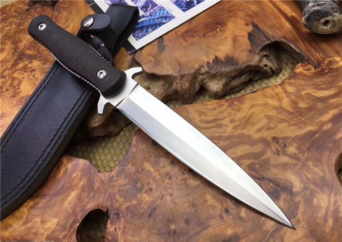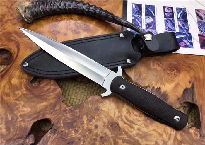 旋风双锋刺刀 全长:30cm 刃长:17cm 柄长:13cm 刃厚:5CM 刃宽:3cm 刃材:D2 柄材:高端太空亚麻纤维 硬度:60HRC 重量:380克 表面处理:砂光