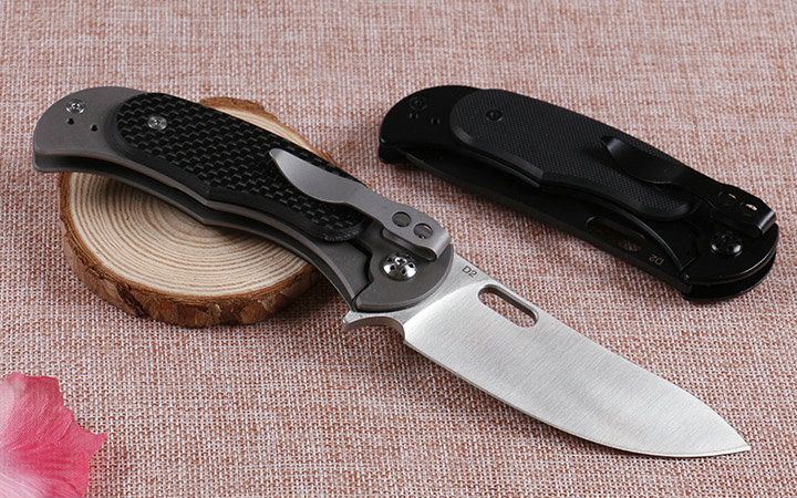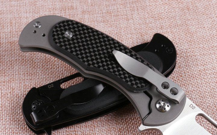 VUCR碳纤快开折刀 全 长:20.5cm 刃 长:8.8cm 柄 长:11.7cm 刃 宽:3.0cm(最宽处) 刃 厚:3.9mm 刃 材:优质D2 硬 度:60-62HRC 刀 柄:钛柄+碳纤(表面经真空镀钛处理) 表 面:精细沙光 锁 定:侧锁 重 量:180克(含包装) 备 注:高品质尼龙套 其 他:现货是加装进口轴承,开合更顺畅