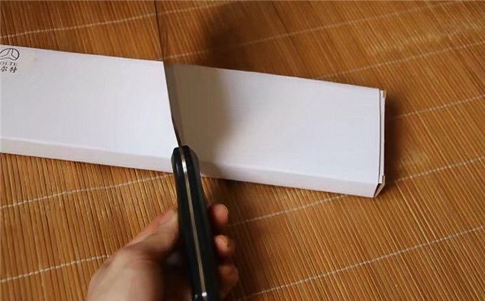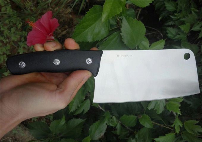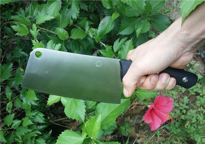 博尔特厨刀D2钢 全长:301mm 刃长:184mm 刃厚:2.3mm 刃最宽处:88mm 表面:幼砂光 类型:主切,小砍,以锋利度、韧性保持度最好 开刃方式:二次开刃 刃材:D2(线切割开料) 热处理方式:真空淬油热处理 硬度:60-61HRC 柄材:黑色防滑G10+不锈钢螺丝钉 净重:385克(不含包装) 包装:白色硬纸盒