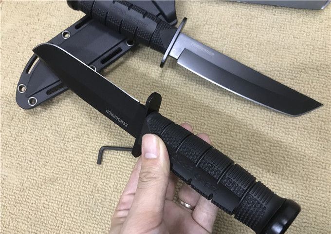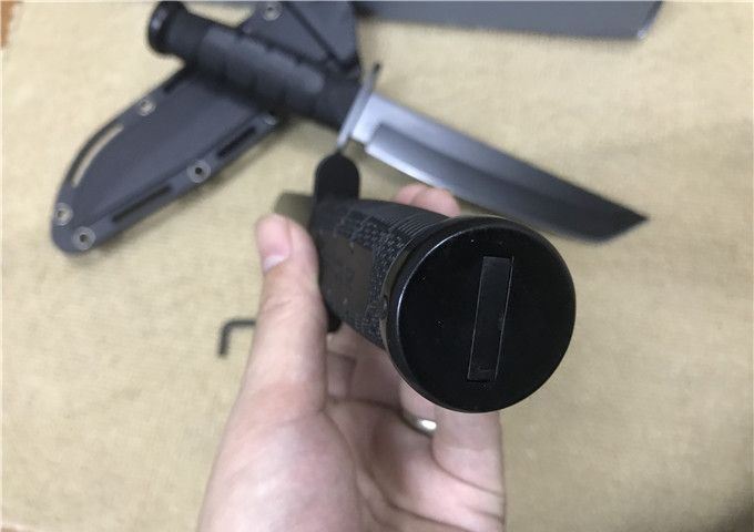 冷钢求生之路升级版直刀 全 长: 300mm 刃 长: 176mm 刃 材: 7Cr13Mov 硬 度: 58HRC 表 面: 发黑 刃 厚: 4.8mm 柄 材: ABS 重 量: 315g 配彩盒+螺丝工具+绑腿带