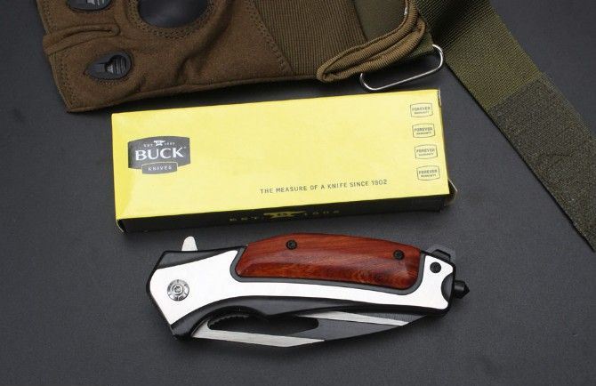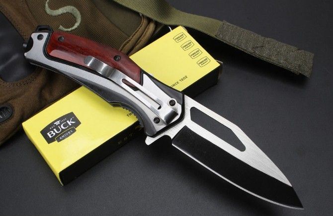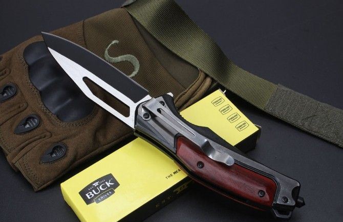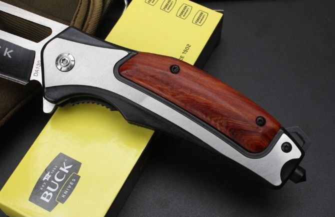 巴克DA130快开折刀 全 长:20.7cm 刃 长:8.8cm 柄 长:11.9cm 刃 宽:3.1cm 刃 厚:0.28cm 刃 材:5Cr15Mov 重 量:197g(含包装) 硬 度:58HRC 表 面:黑钛+表面沙光 柄 材:钢+酸枝木 锁 型:侧锁 其 他:彩盒