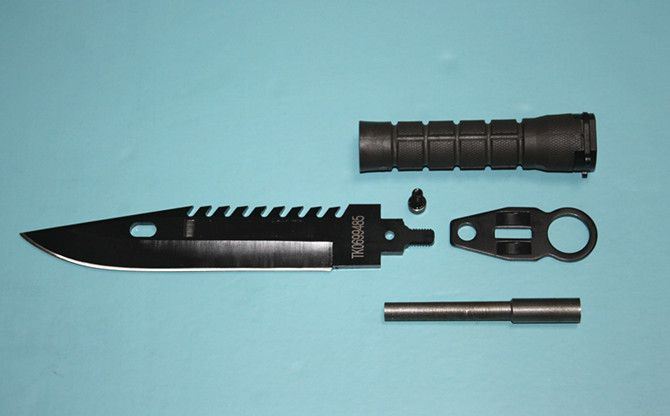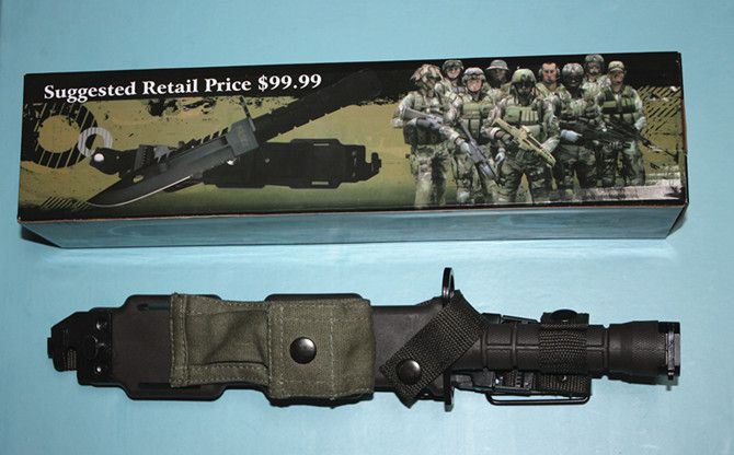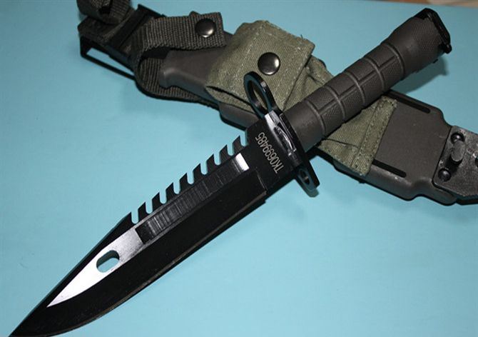 美军现役D80(黑全刃绿柄) 全 长: 32cm 刃 长: 19.8cm 刃 厚: 5.9mm 刃 材: 4CR13 硬 度: 56HRC 重 量: 刀410g+鞘380g 表 面: 发黑 柄 材: ABS 刀 鞘: ABS