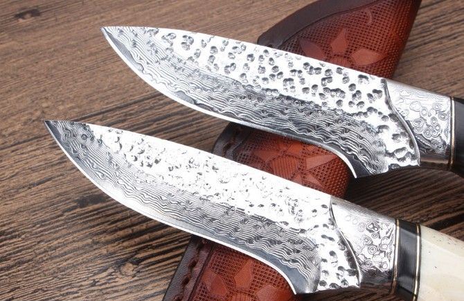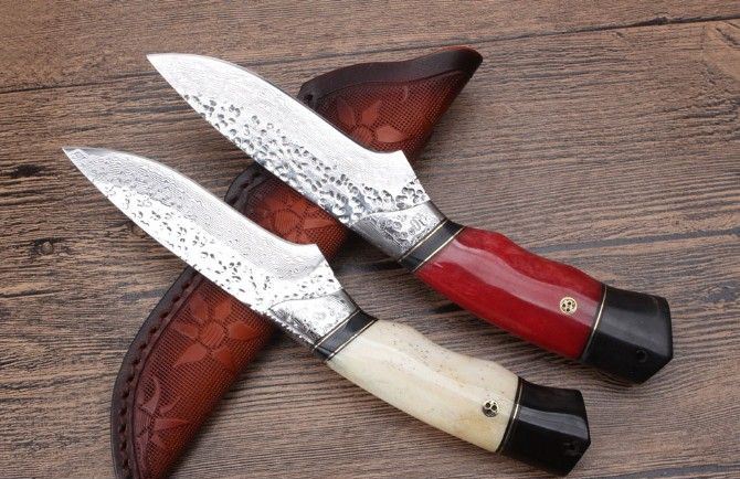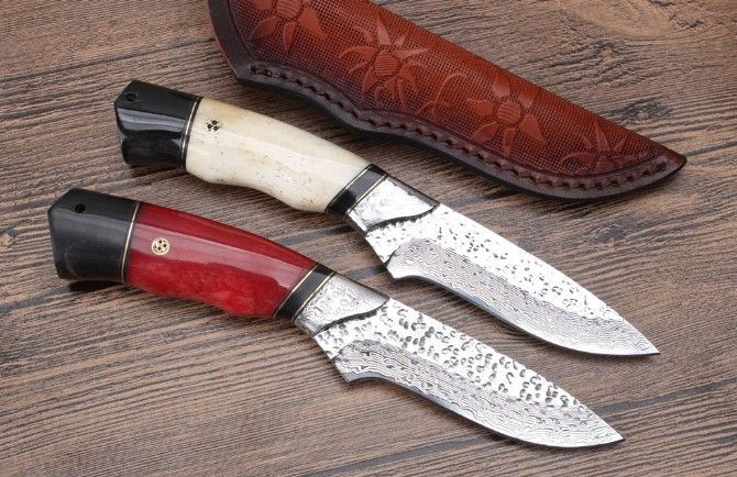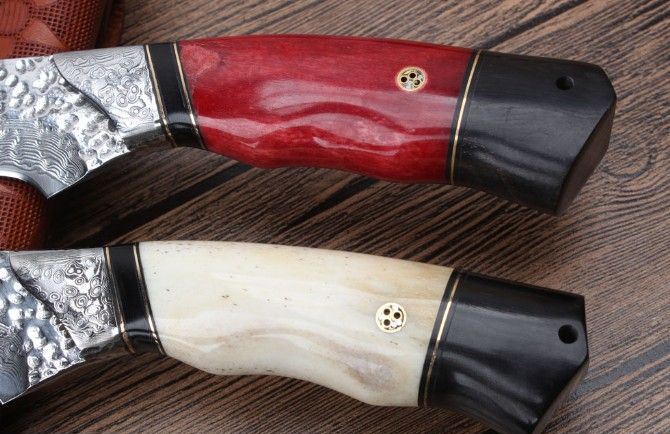 进口VG10大马士革钢箭鱼直刀(白骨、红骨)