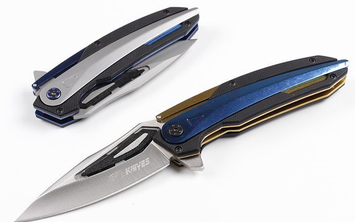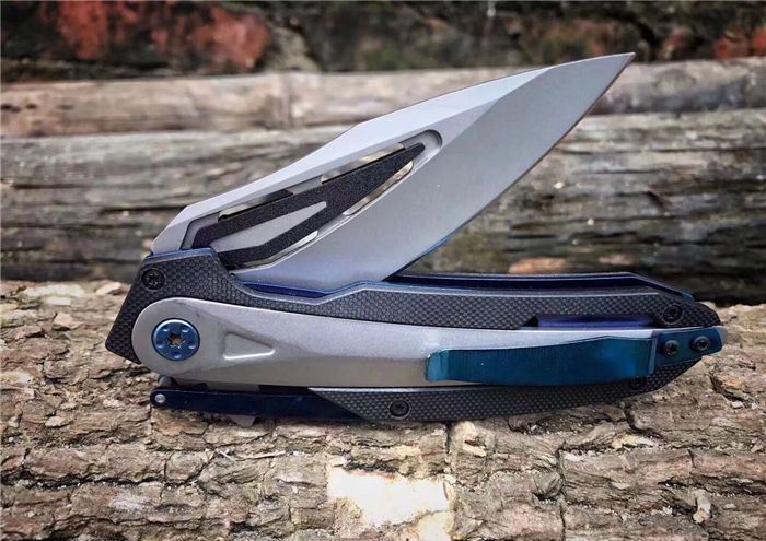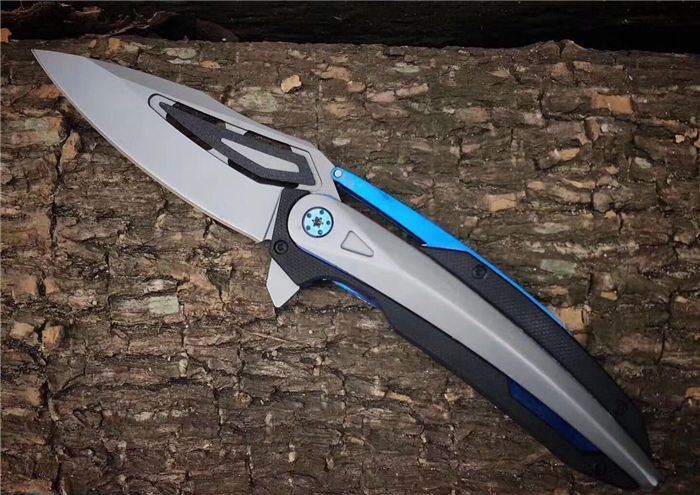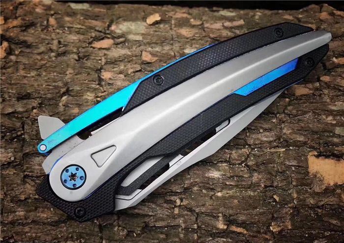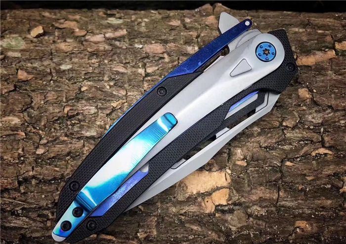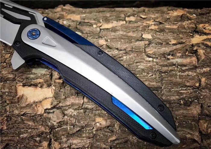 零公差ZT0999快开折刀 全长:210mm 刃长:90mm 柄材:铝合金+G10 刃材:7Cr15 硬度:58左右 重量:280g 系统:滚珠轴承 包装:战术刀套