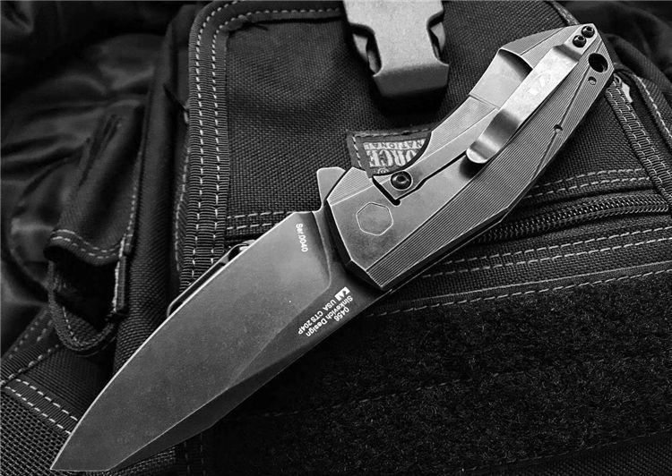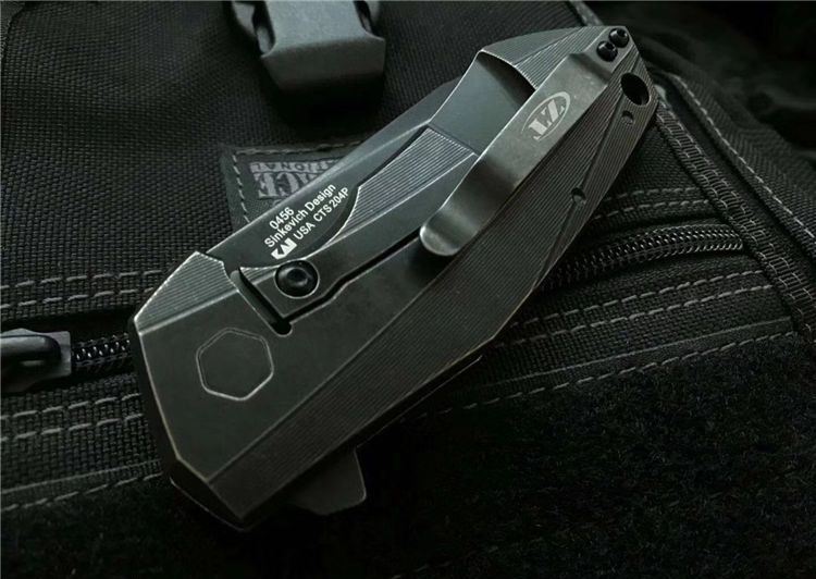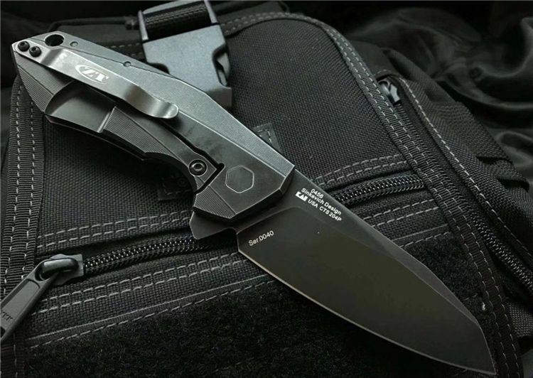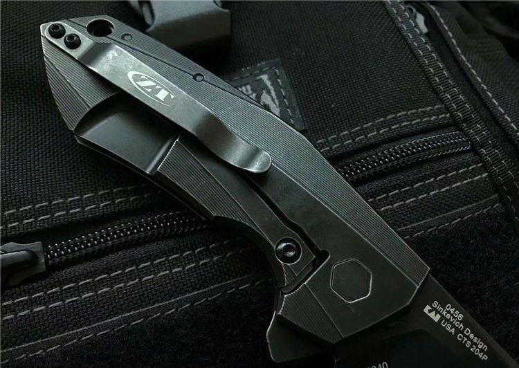 零公差ZT0456沧桑石洗版折刀 总长度:195毫米 刃长:82毫米 柄长:113毫米 刃厚:4毫米 刃宽:33毫米 刀片表面处理:石洗+四轴数控水磨 系统:单列滚珠轴承 硬度:59-60HRC 净重:180克 刃材:D2(100%D2钢) 手柄材质:TC4钛合金,CNC雕刻成型 表面处理:阳极钛