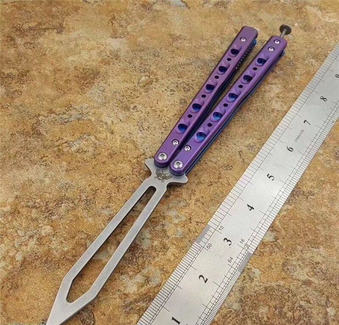 钛柄Bm51蝴蝶甩刀多色可选 刃材:D2工具钢 刀柄:全钛 全长:23.75cm 刃长:10.78 柄长:13 刃厚:0.254 硬庋:60