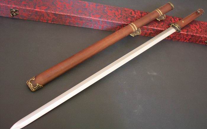 全长:105 厘米 柄长:28 厘米 剑宽:3.2 厘米 厚度:0.9厘米 材质:花纹钢 工艺:古法淬火,回火,等热处理.全手工锻造,四面手工精细研磨,开刃. 硬度:58HRC 装配:纯铜剑装,檀木 剑重:1460克(含鞘) 整套:2200克(含锦盒)