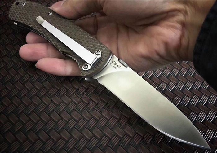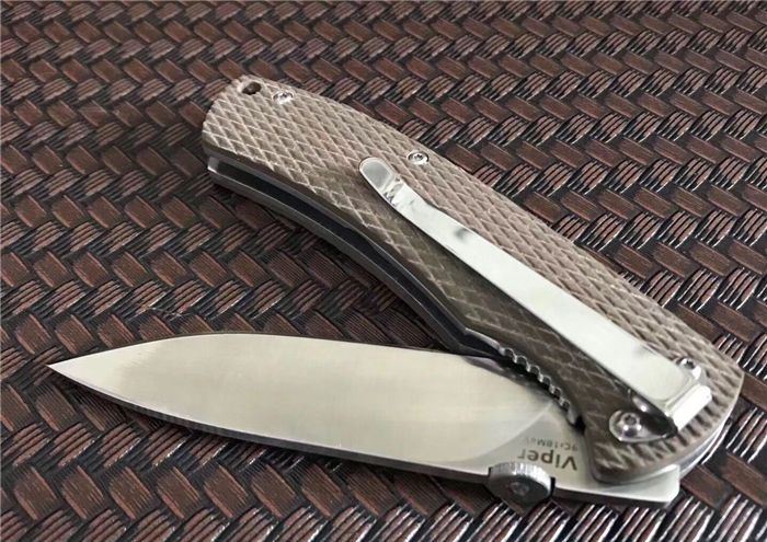 原装正品HARNDS悍迪Viper蝰蛇折刀 刀刃:9Cr18MoV 手柄:G10 涂层:砂光/黑钛 长度:全长210mm 刀刃长:85mm 锁型:线锁 硬度:HRC58-60