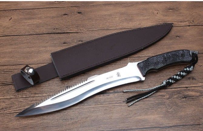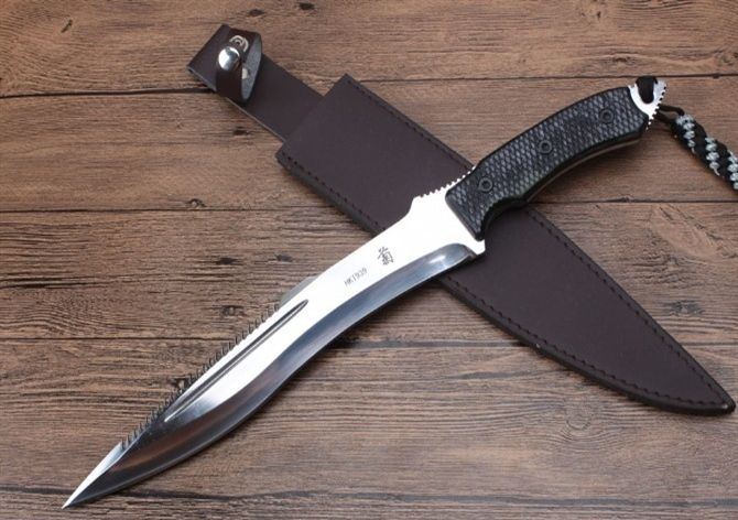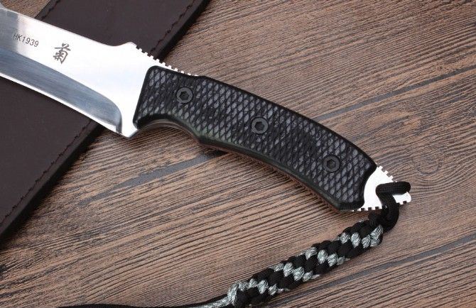 菊男HK1939直刀 全 长:450mm 刃 长:293mm 柄 长:152mm 刃 宽:43mm 刃 厚:9.5mm 刃 材:7Cr13Mov 重 量:902g(含包装) 硬 度:56HRC 表 面:镜光 柄 材:G10柄 锁 型:定锁 其 他:配仿皮套纸盒