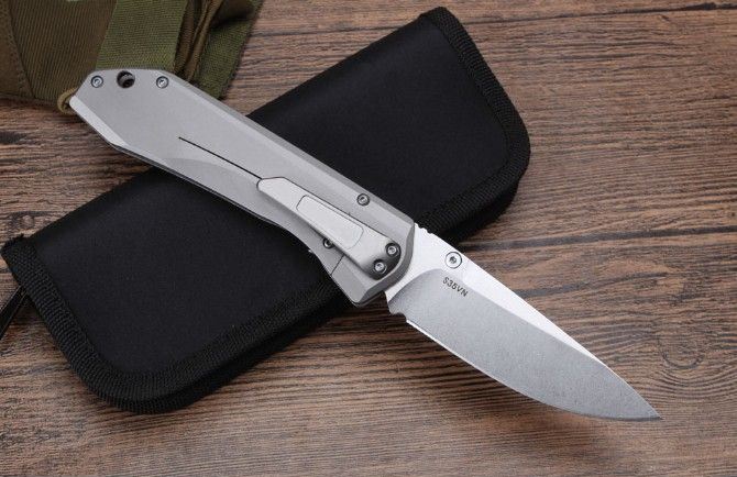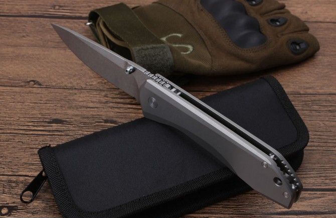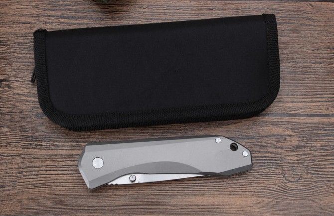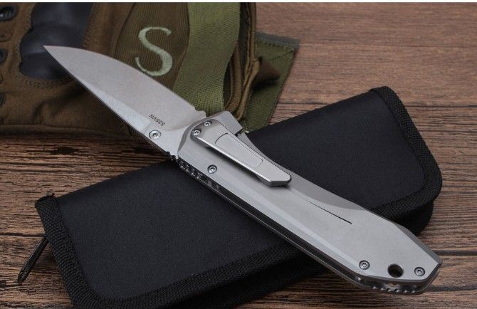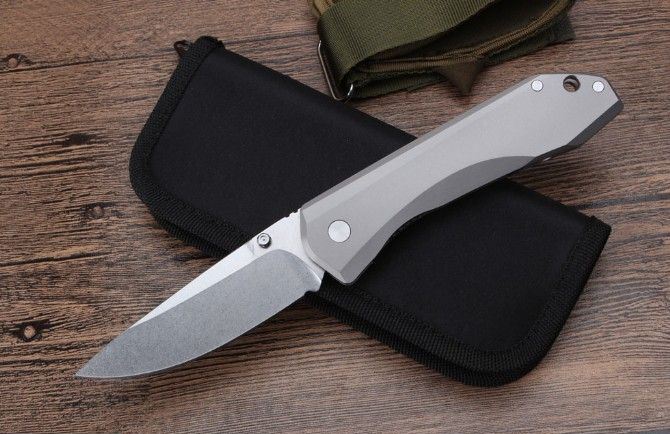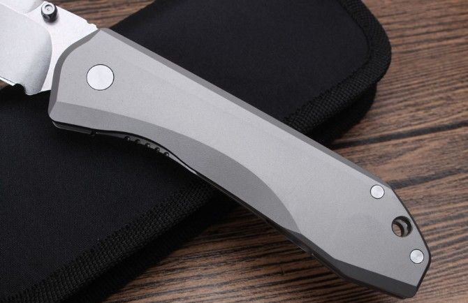 蝴蝶761钛合金折刀 总长:212MM 刃长:90mm 柄长:122MM 厚度:3mm 宽度:28mm 刀片表面:石洗 系统:双排球轴承 硬度:58HRC 净重:150克 刀片材质:S35VN 手柄材质:钛合金 手柄表面:喷砂 其他:尼龙套