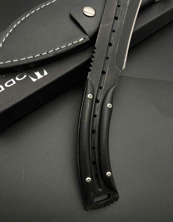 托德贝格美人鱼沧桑石洗直刀 全 长:330mm 刃 长:180mm 柄 长:120mm 刃 宽:51mm 刃 厚:6.4mm 刃 材:7Cr17Mov 重 量:550g(含包装) 硬 度:58HRC 表 面:沧桑石洗 柄 材:钢一体柄+G10条 锁 型:定锁 其 他:配牛皮套+牛皮纸盒