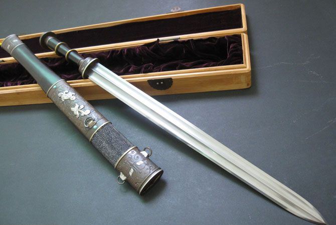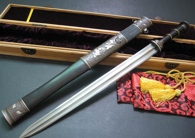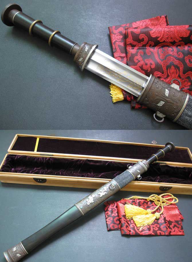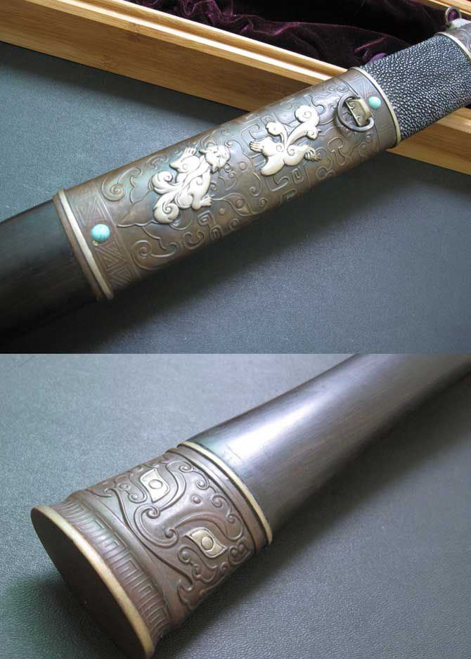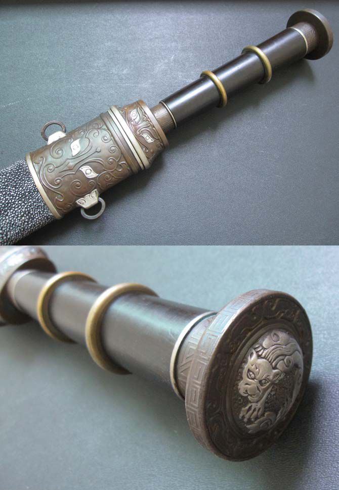 【注解】出自中国著名的铸剑师之手,根据古越剑的外形参照多种春秋战国剑精心设计一款古战剑,此剑外观庄重大方,剑身做工精细。是一款难得的收藏品。