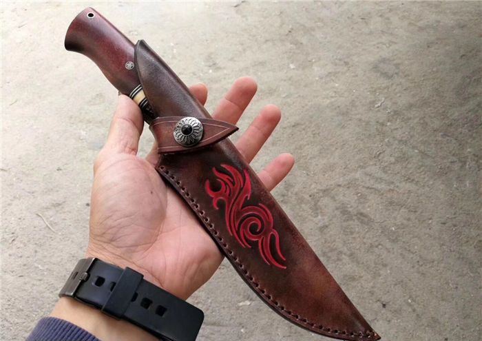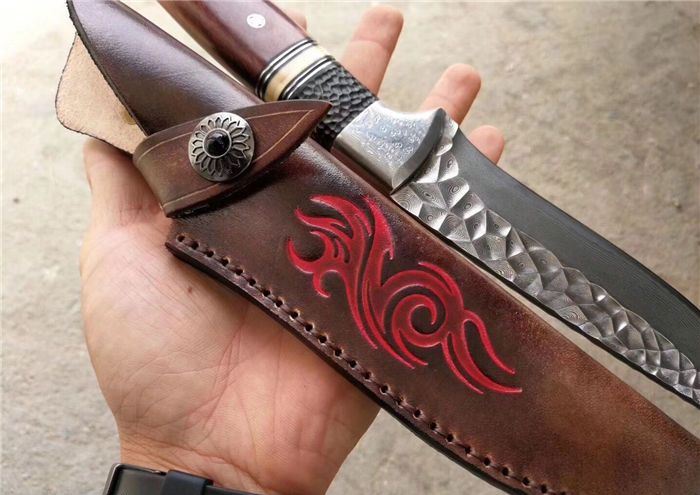 皮套:手工压花进口植鞣牛皮鞘