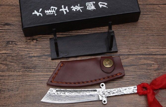 迷你纪念大马士革红军刀 全 长: 16.1cm 刃 长: 8.3cm 柄 长: 7.5cm 刃 宽. 2.1cm 硬 度: 59HRC 刃 厚: 0.35cm 重 量: 156克含包装 刃 材: 大马士革钢 表 面: 大马士革钢特有的花纹原色 其 他: 刃口锋利,真头层牛皮套,礼品纸盒