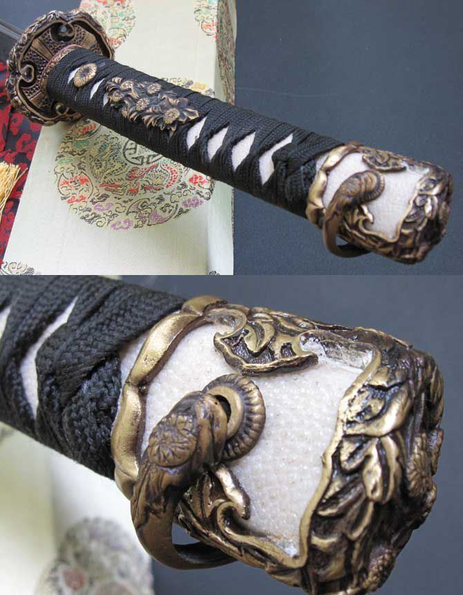 柄材:真鱼皮外缠丝绵绳 带木钉