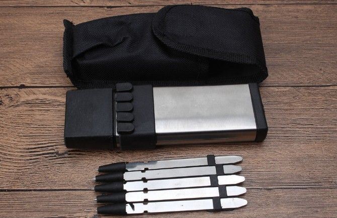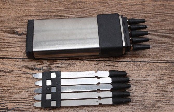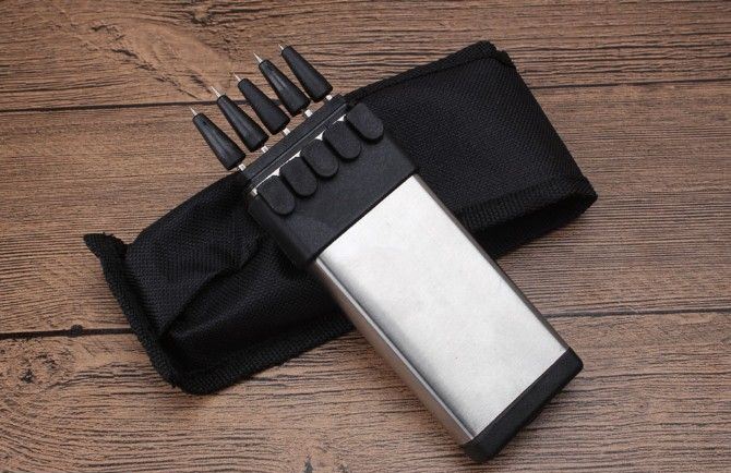 新版防卫镖(五支装) 规格:CM15.4X4.5X2 另配单支镖5支后面带指南针 最远射程10米左右。威力较小,仅适用于较近距离(5米内)的适当防卫之用。该防卫镖设计精巧,携带方便,深受出租车司机或是私家车车主应急防卫之用。 注:该镖打开防护罩后,为确保安全,请勿对着自已和他人。打开保险后,更应该时刻注意安全!不需要使用时请随时关上保险和防护罩,以防发生意外!请存放于小孩不能接触的地方,以防小孩误用