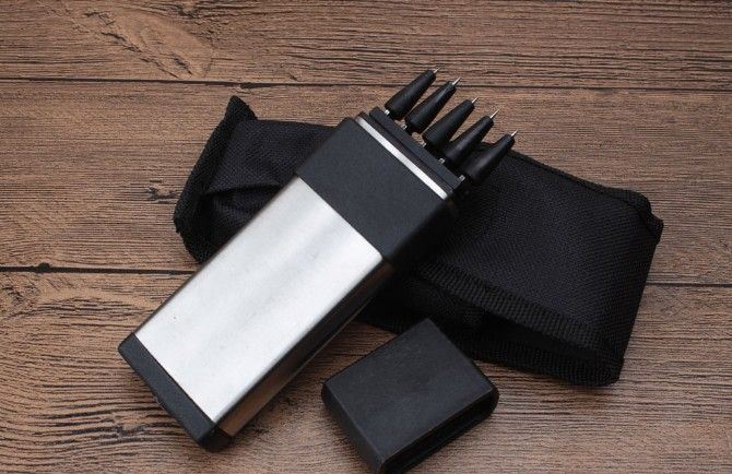 最远射程10米左右。威力较小,仅适用于较近距离(5米内)的适当防卫之用。该防卫镖设计精巧,携带方便,深受出租车司机或是私家车车主应急防卫之用。