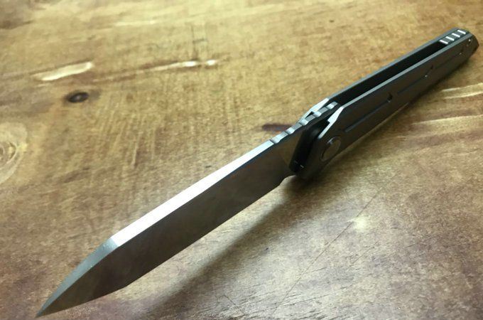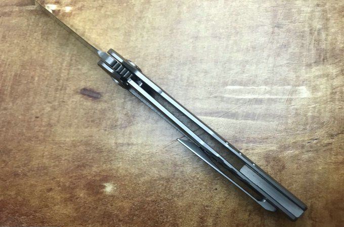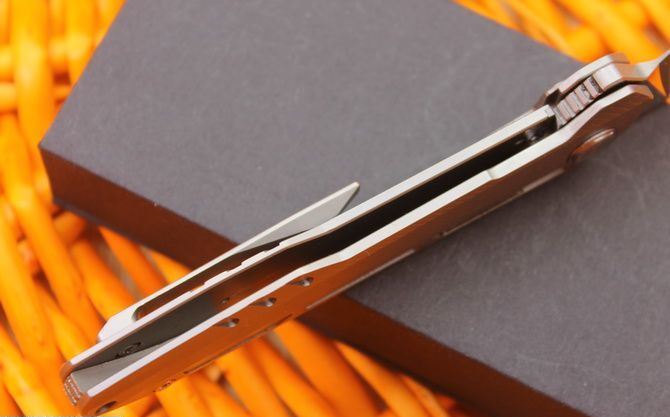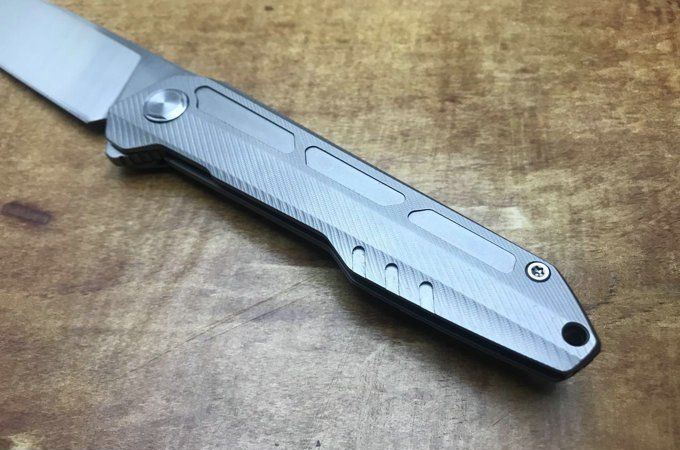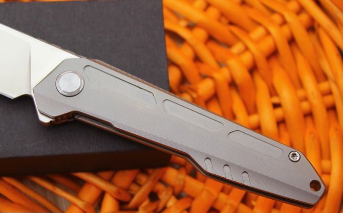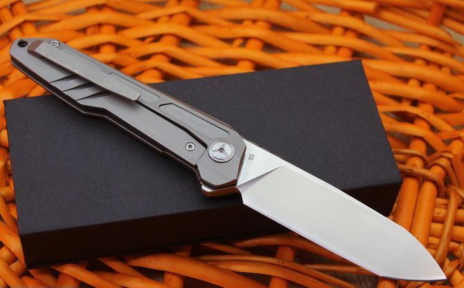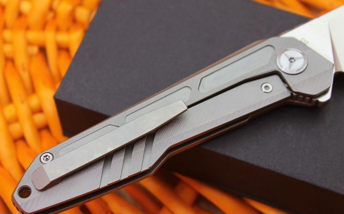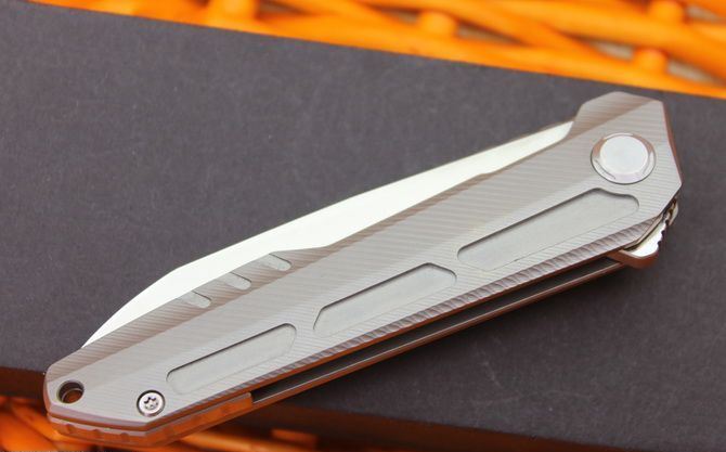 最新的拔手钉快开方式,开合更加顺畅,全钛刀柄,刀片采用D2材料,全手工打磨,线条流畅;最高要求的精准的外六角止位钉,更显工艺高超;内嵚式合金锁位片,使刀柄表面光滑,给人最美观感!