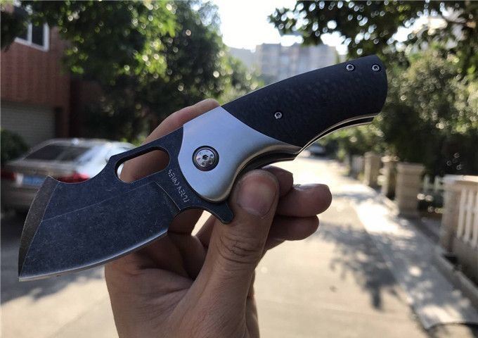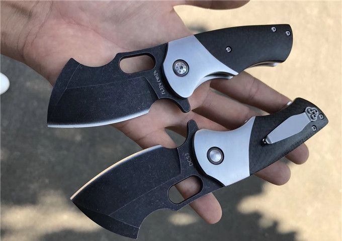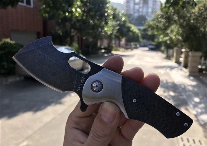 TUREN坦克1代折刀碳纤维款 总长:16.5cm 刃长:5.5cm 刃厚:3.5mm 刃宽:3.8cm 钢材:DC53合金模具钢 硬度:60-61HRC 热处理:真空深冷 柄材:碳纤维,快开功能