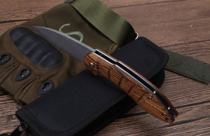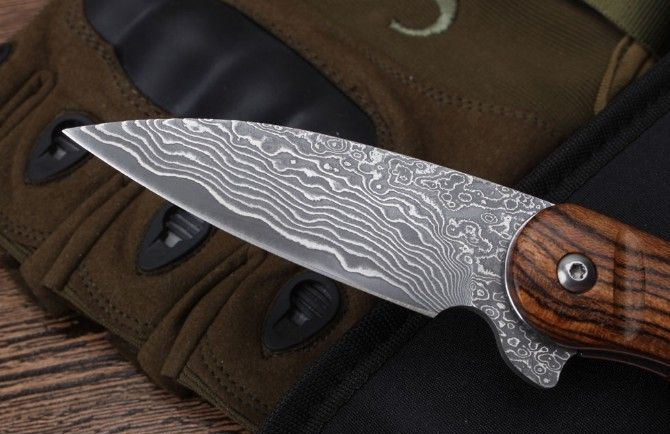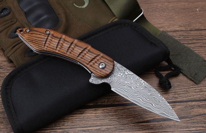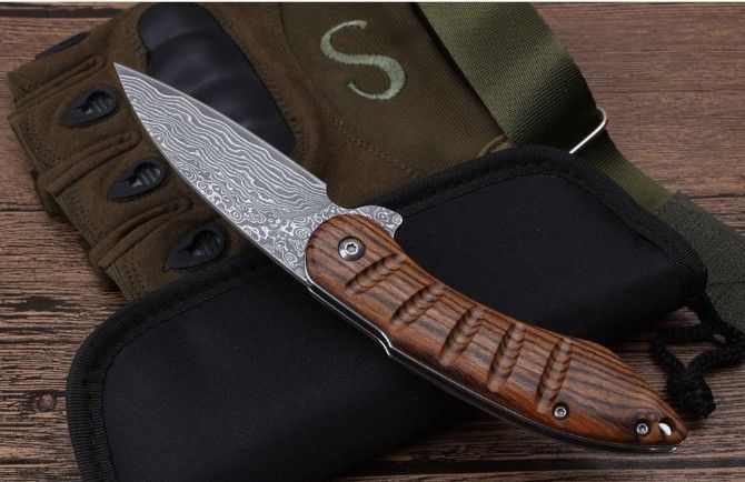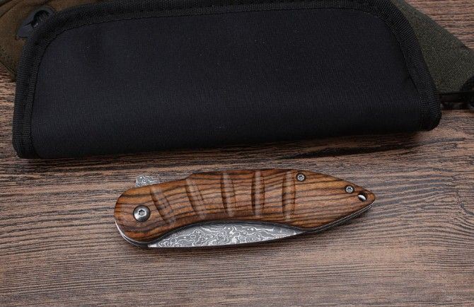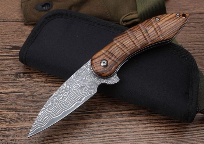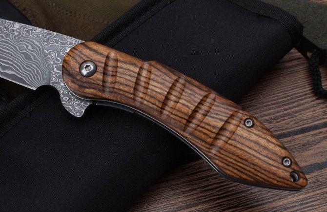 莫斯科酸枝木大马士革轴承快开折刀弧柄