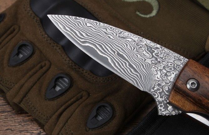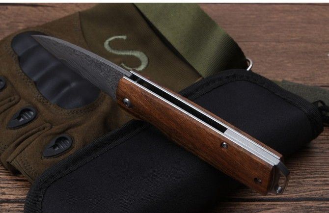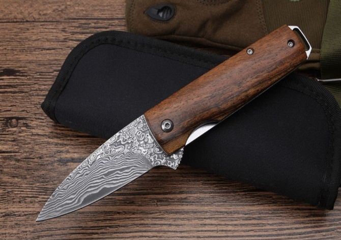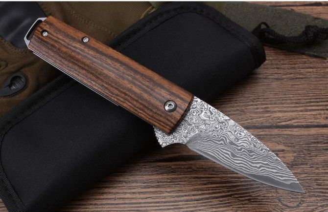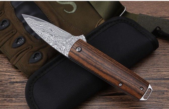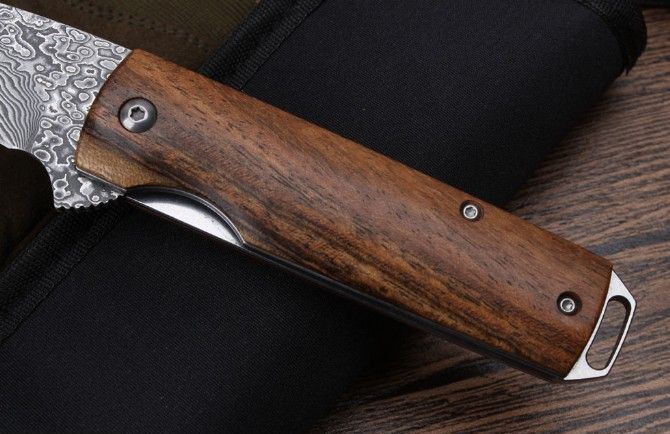 莫斯科酸枝木大马士革轴承快开折刀直柄