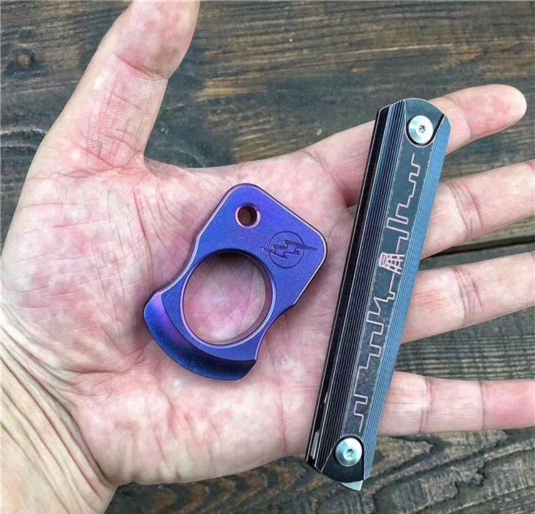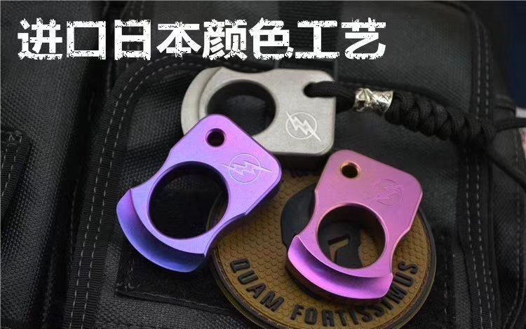新款TC4防卫拳指 高度:55MM 宽度:35MM 厚度:11MM 材质:美国TC4 重量:57g 功能:EDC酷玩 随身防卫,破窗