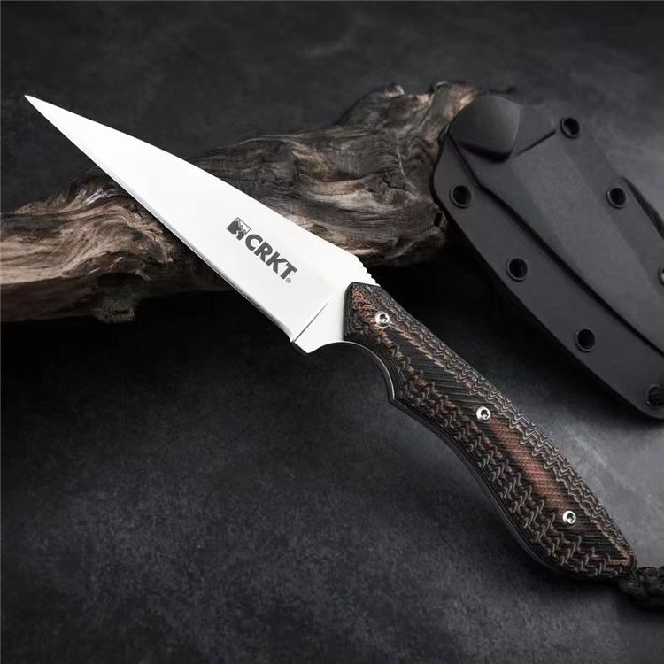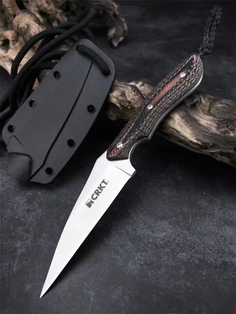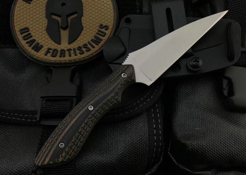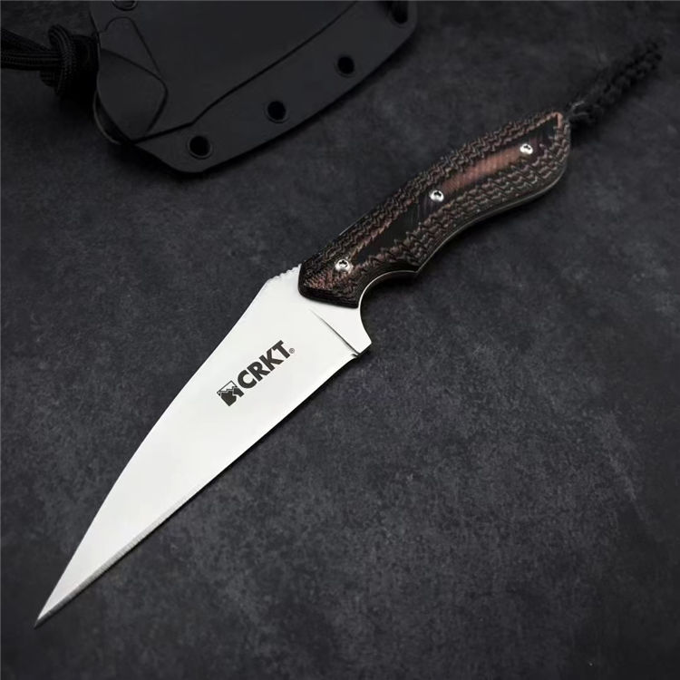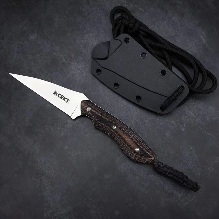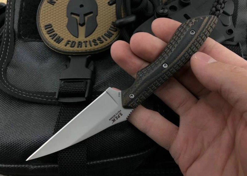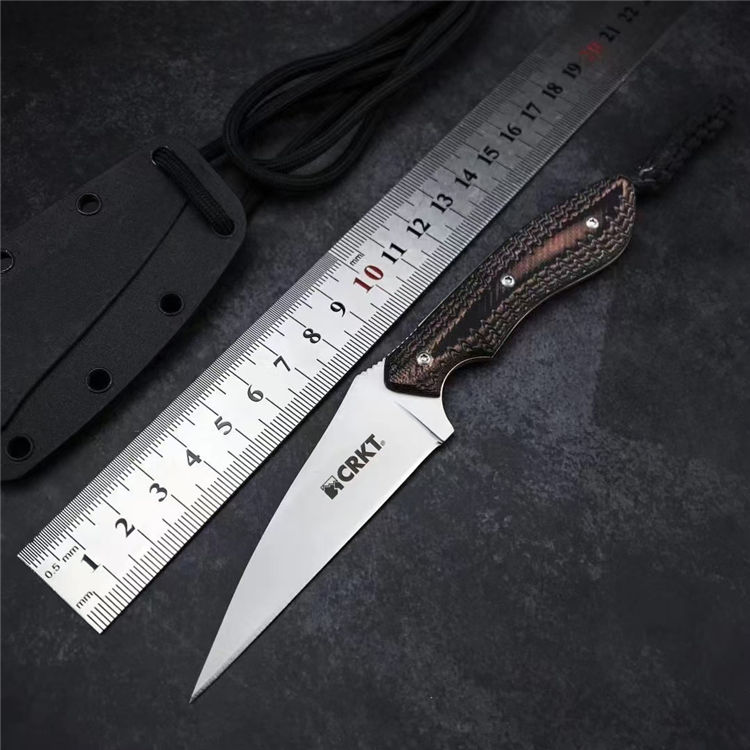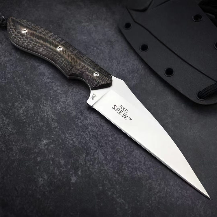 哥伦比亚蜂鸟防卫手刺 全长:158mm 刃长:76mm 柄长:82mm 刃宽最宽处:22mm 刃厚:2mm 刃材:8CR13MOV 硬度:58HRC 重量:79g 表面:镀钛 柄材:双色G10 锁型:定锁 其他:配K鞘