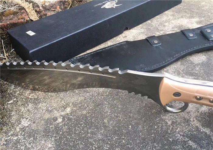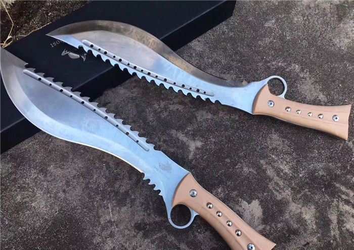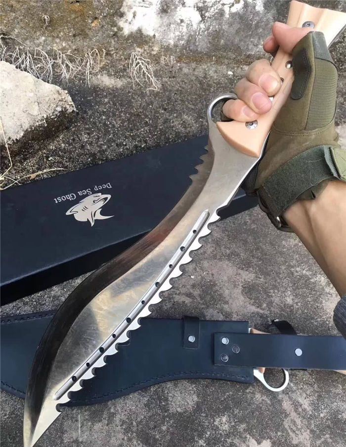 海底幽灵战龙弯刀白刃黄柄 全 长:44.5cm 刃 长:29.9cm 柄 长:14.7cm 刃 宽:6.8cm 刃 厚:0.41cm 刃 材:7Cr17Mov 重 量:967g(含包装) 柄 材:ABS