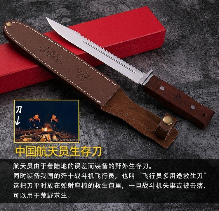 中国航天员由于着陆地的误差而装备的野外生存刀。同时装备我国的歼十战斗机飞行员,也叫“飞行员多用途救生刀”这把刀平时放在弹射座椅的救生包里,一旦战斗机失事或被击落,可以用于荒野求生。