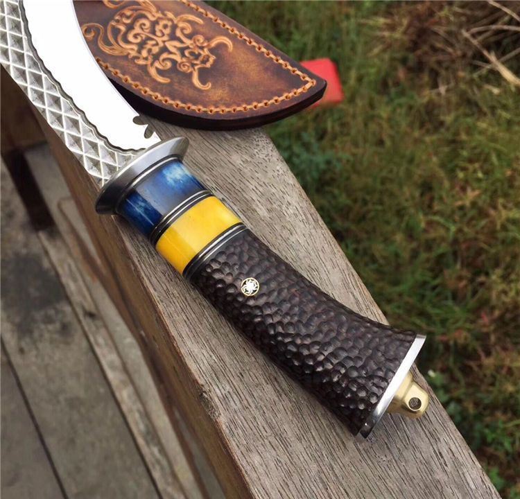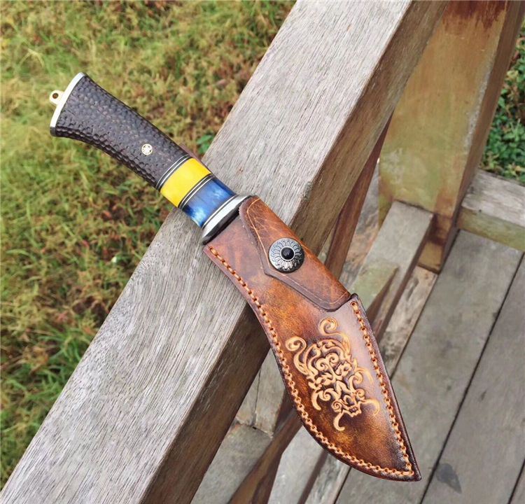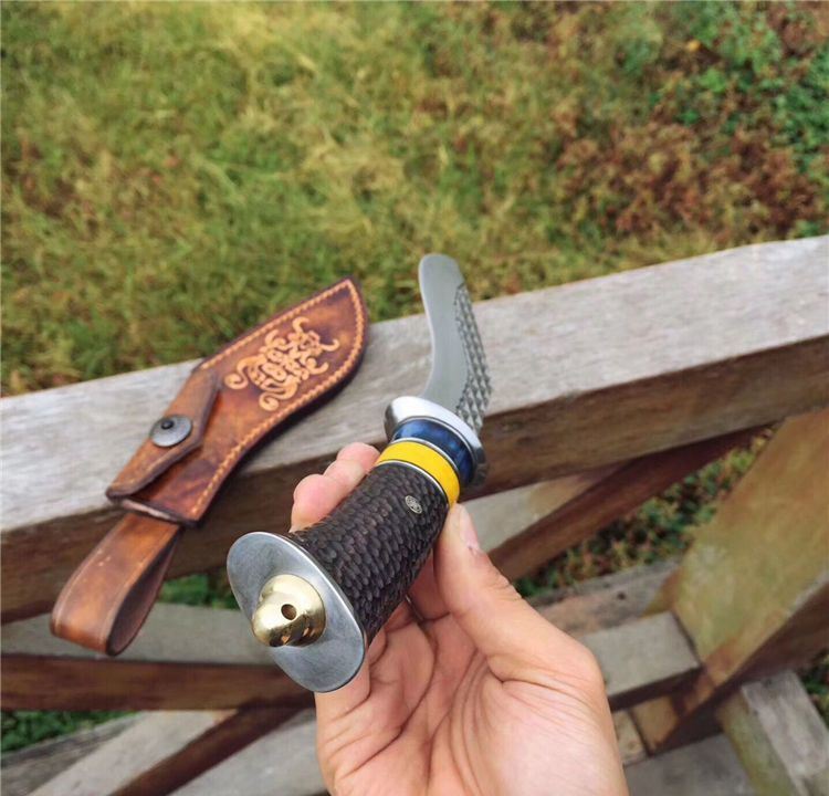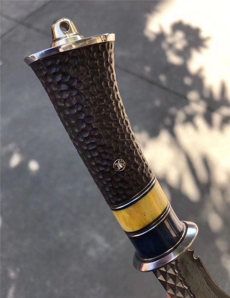 手柄材质:白钢头+蓝牛骨+黄牛骨+黑檀木雕刻