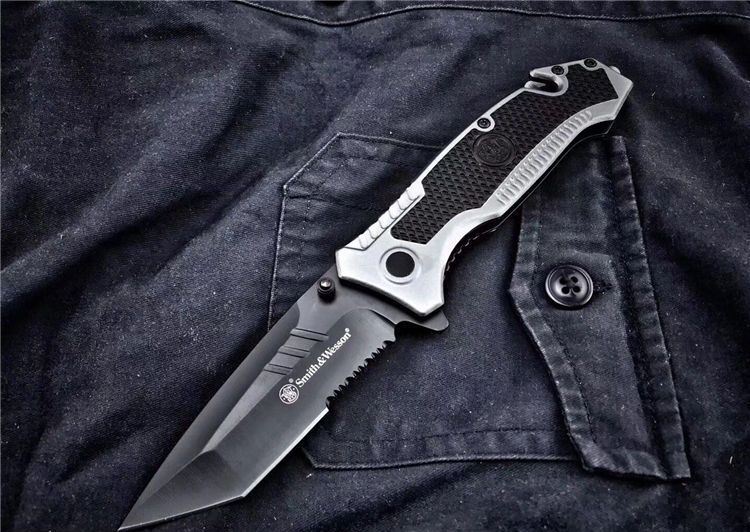 史密斯威森SWP17折刀 全 长:20.5cm 刃 长:8.3cm 刃 厚:3.0mm 刃 材:5cr13mov 硬 度:57HRC 表 面:氧化黑 柄 材:铝柄 重 量:141g 已开锋,带背夹