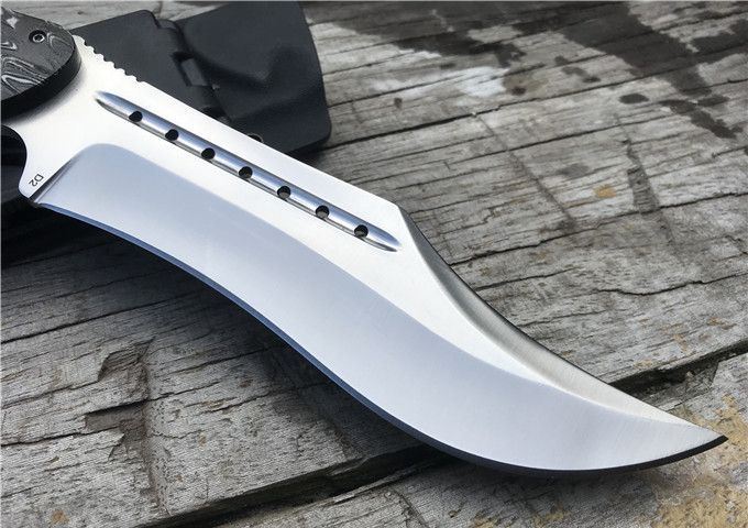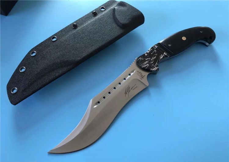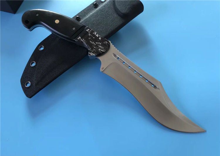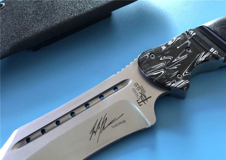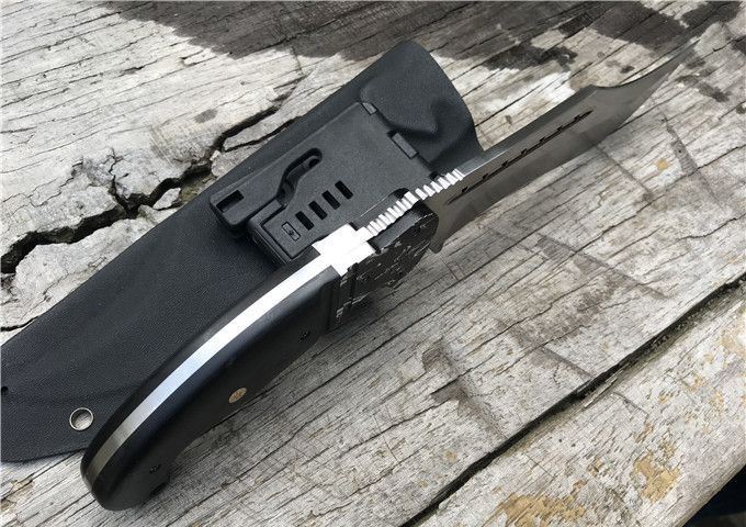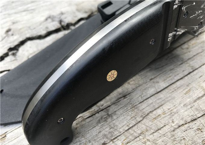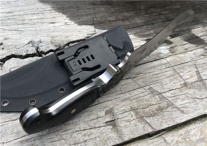 托德贝格—野猪战术刀 刃材:D2 全长:31CM 刃长:16.5CM 柄长:14.5CM 刃厚:0.5CM 表面:砂光 硬度:HRC59-60 (真空油淬热处理); 手柄:钢头+G10 刀鞘:进口Kydex鞘 包装:黑色礼品盒 刀重:约360G 总重(包括包装盒等):约600G