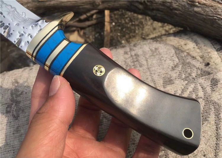 剑客2代大马士革直刀 全 长:25.1cm 刃 长:12.5cm 刃 宽:28cm 刃 厚:3.2mm 柄 长:12.5cm 刃 材:进口大马士革钢 硬 度:58-60HRC 净 重:170g 总 重:346克(含皮套) 表 面:大马士革花纹 柄 材:黑檀木铜头 其 他:牛皮刀套+礼品盒
