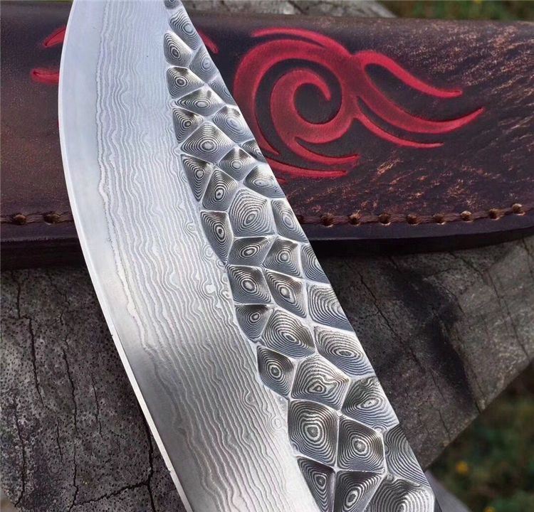 刃材:进口VG10芯大马士革钢