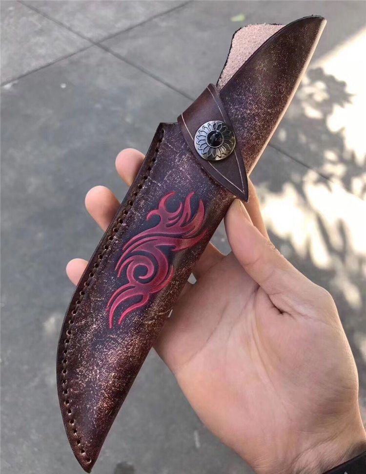 皮套:手工压花进口植鞣牛皮鞘