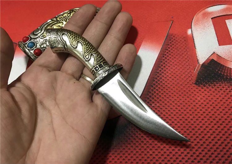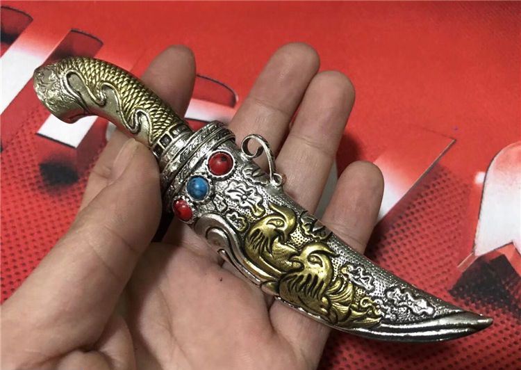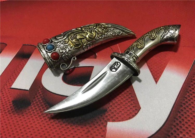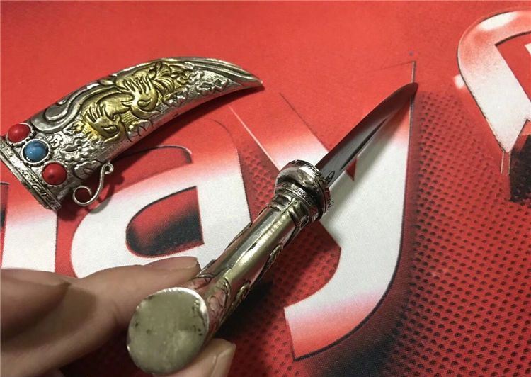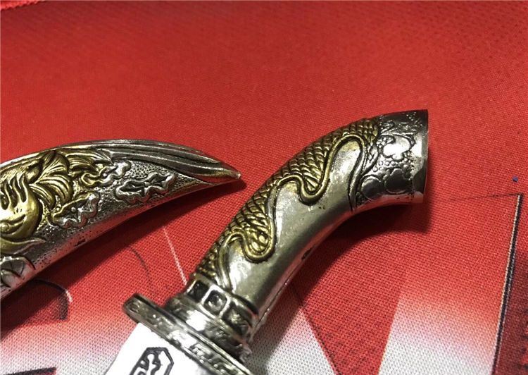 此刀来源于藏族民间手工艺制作、由于产品属于 纯手工、所以制作起来工艺相当复杂、(难免会有些小划痕瑕 疵)加上刀子又小不好拿握,制作起来就更加困难、刀身外表 使用藏族白铜、花纹图案都是手工雕刻【寓意】我们可以看到 刀身外壳刻有一对鸳鸯、其寓意一恩爱夫妻,在我国古代早 已把鸳鸯比作兄弟,其诗词名句有“昔为鸳和鸯,今为参与 商”在藏族人眼里就是“止则相遇,飞则相双”