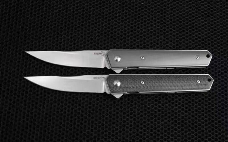 巨力代工版Boker Plus博克Burnley Kwaiken二代必杀折刀 全长:213mm 刃长:89.9mm 柄长:123.8mm 刃材:GB-D2 (标准D2钢) 硬度:60HRC 表面:石洗 柄材:钛合金或者碳纤 刀夹:不锈钢 螺丝:不锈钢 结构:线锁