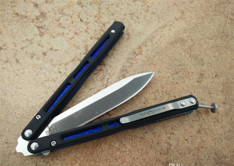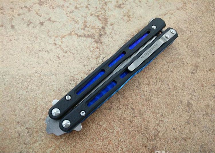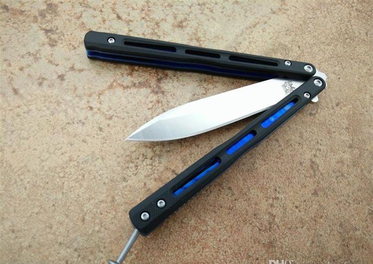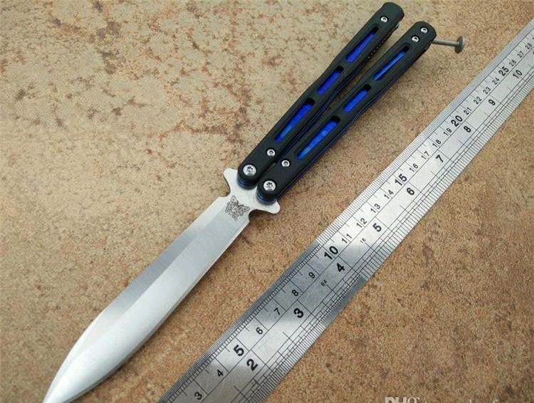 蝴蝶BM51G10柄甩刀 全长:23.75CM(打开) 刃长:10.78CM 刃厚:0.254CM 刃材料:D2工具钢 刀柄:G10柄 硬度:58 刀鞘:尼龙刀鞘 由The one(唯一)精工打造,刀刃选用优质440C刀刃,数控精磨,搭配高品质丝扣等,精工细活,为广大甩刀迷打造经典蝴蝶甩刀
