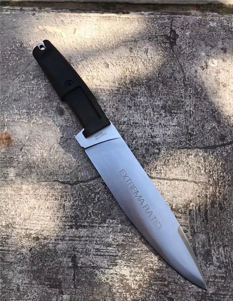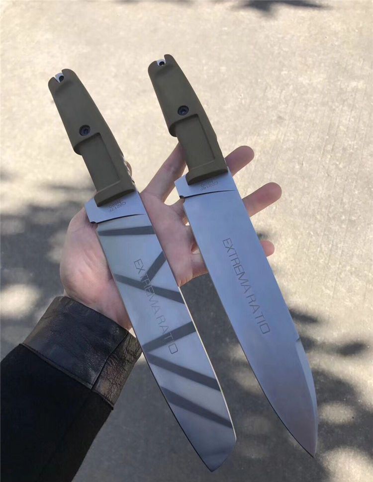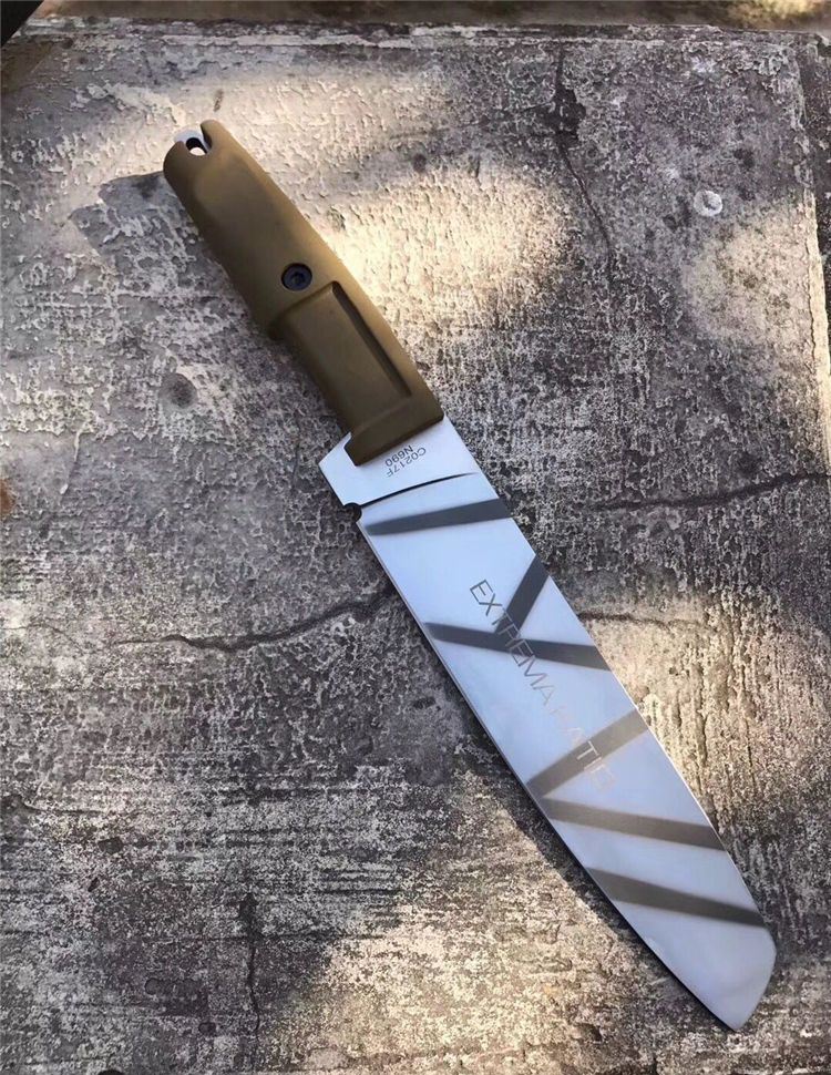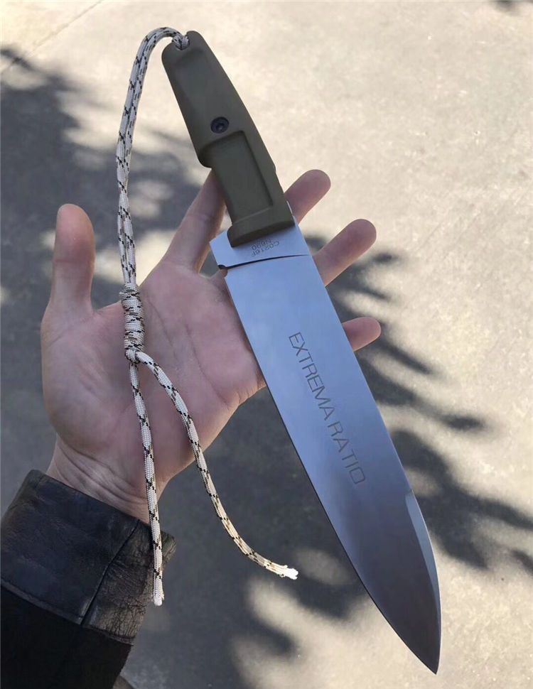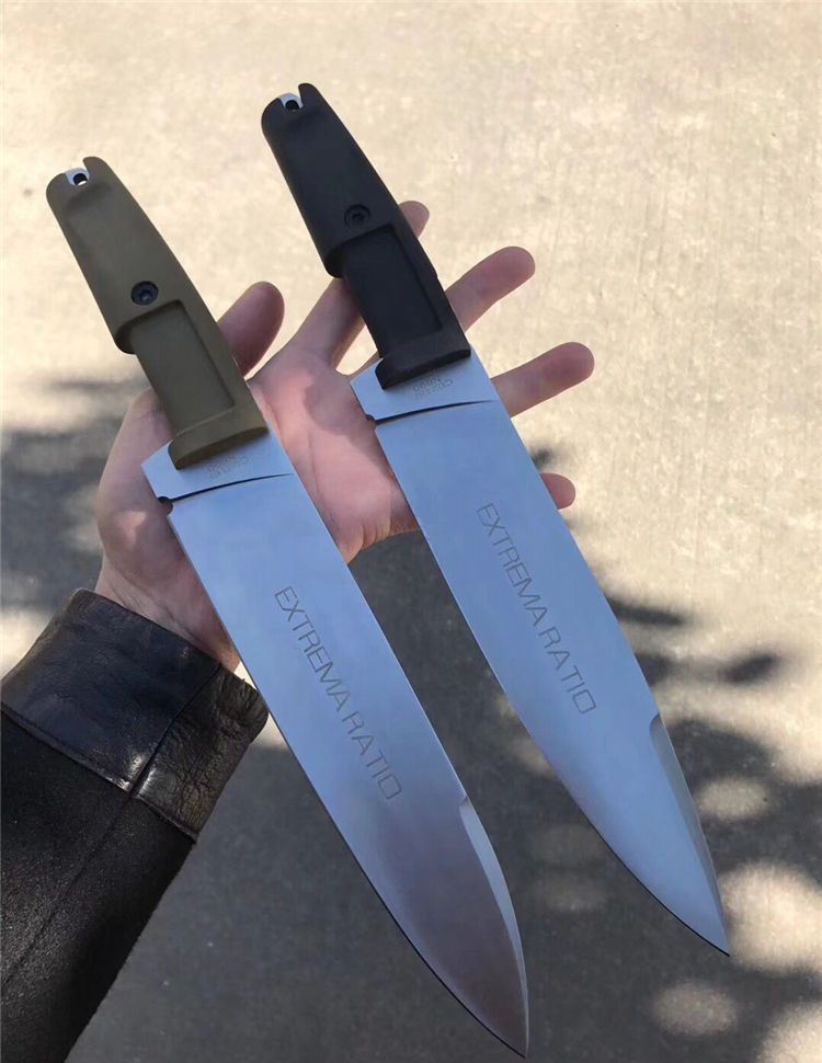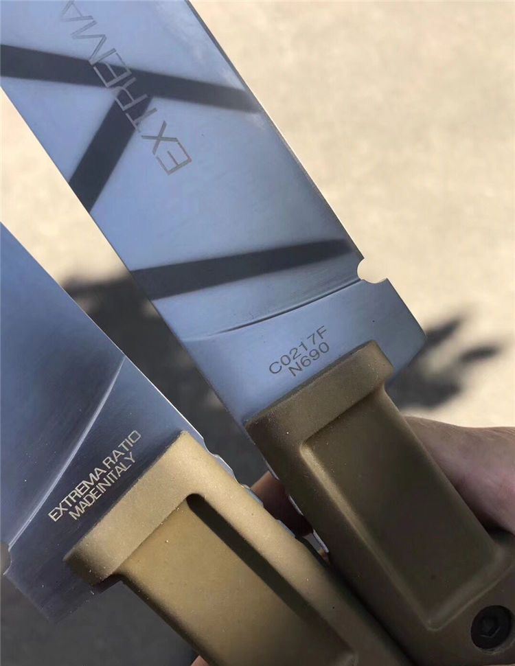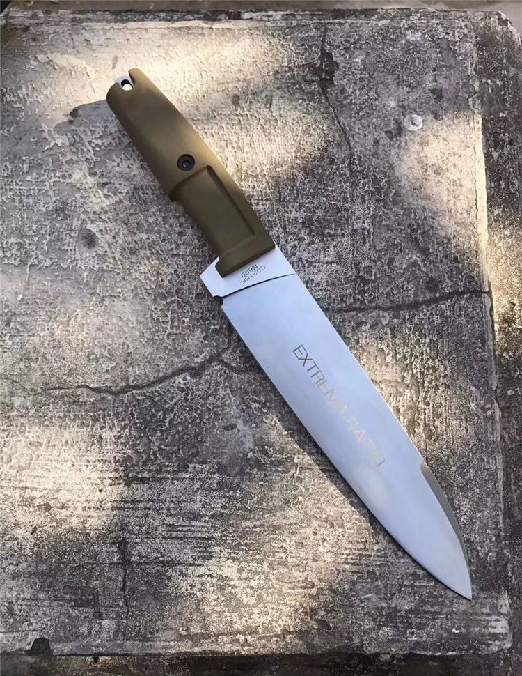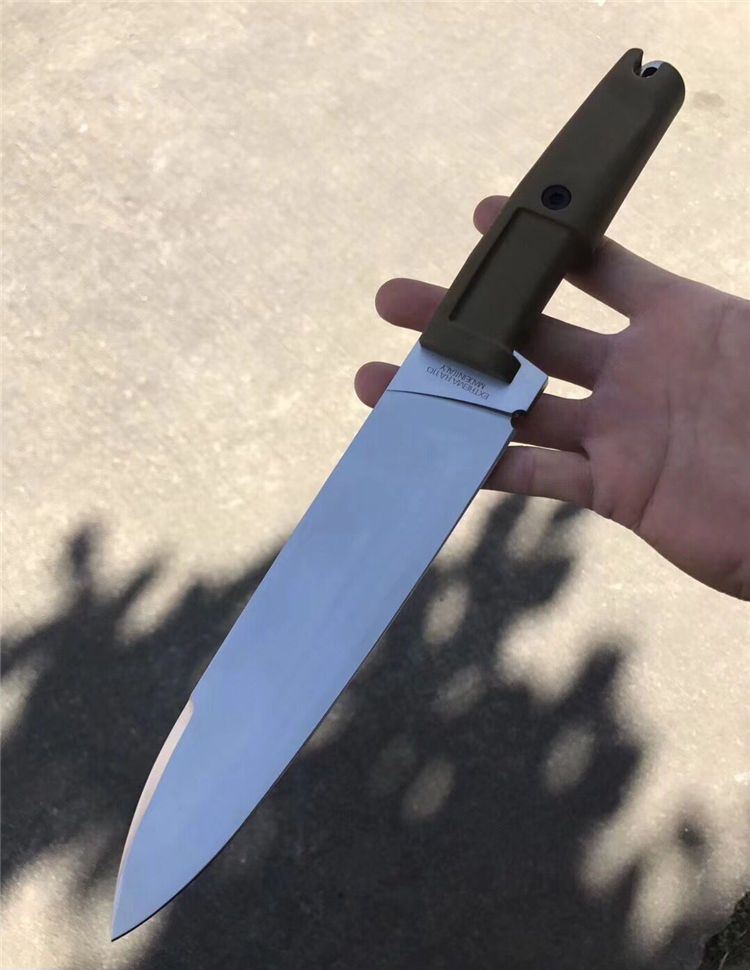 代工极端武力厨刀 总长:34cm 刃长:20cm 刃厚:6mm 刃宽:4.5cm 硬度:60-61HRC真空热处理 钢材:N690钢 柄材:FORPRENE 特点:户外与家用谦备实用型,N690钢材优点防锈性能好!锋利度保持性出色! 出口订单尾货,年底亏本清货!台湾公司下单大陆工厂生产,有小瑕疵,完全不影响使用,甚至看不出来