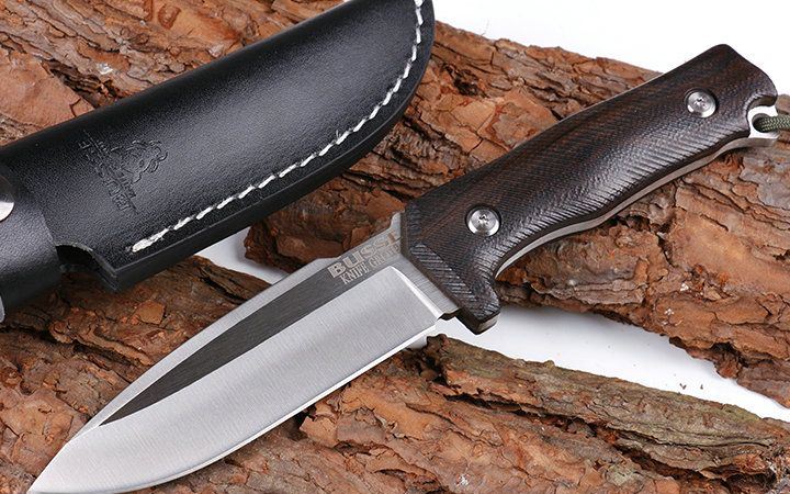 山猪悍马小直刀 全 长: 23.5cm 刃 长: 11.5cm 柄 长: 12 刃 材: 3CR13MOV 硬 度: 55 表 面: 金属拉丝伴沙光 刃 厚: 0.5cm 柄 材: 一体全钢手柄,黑檀木 刀 重: 300克 总 重: 600克 刀 鞘: 皮套
