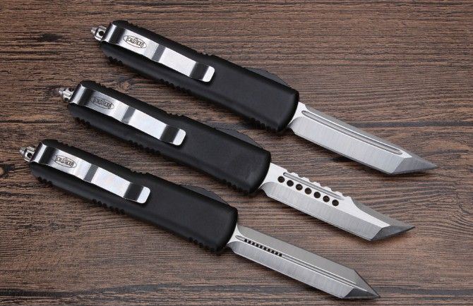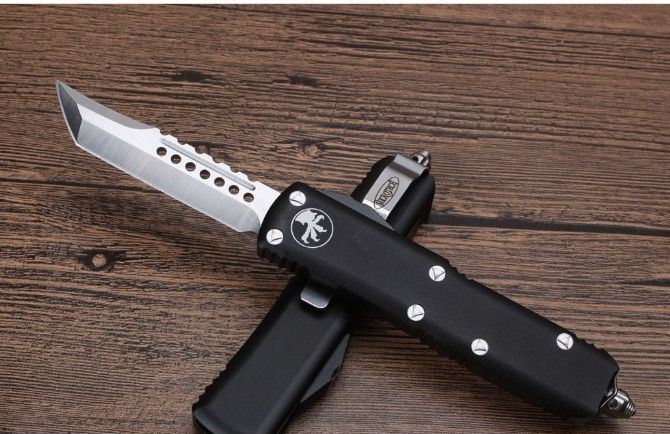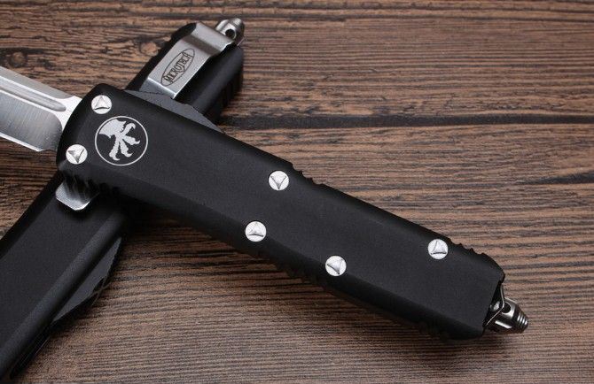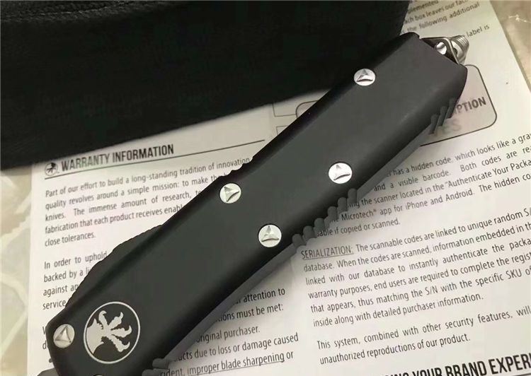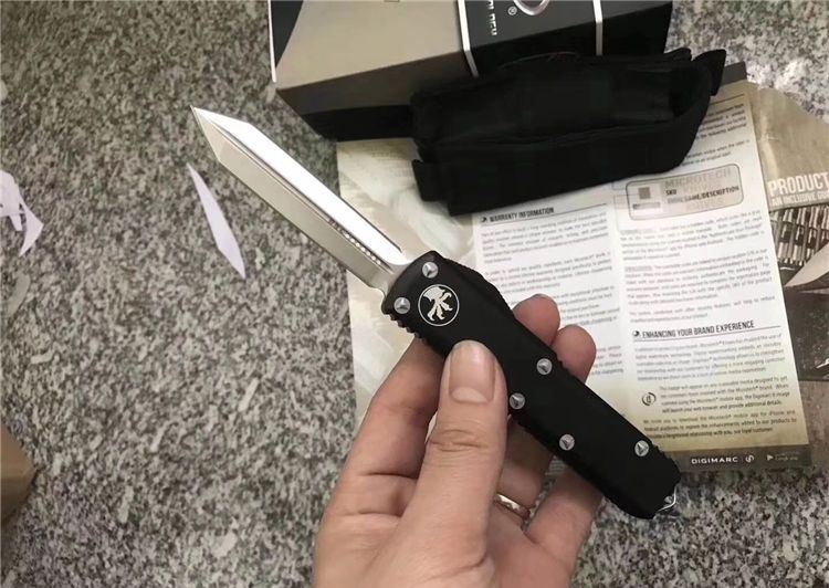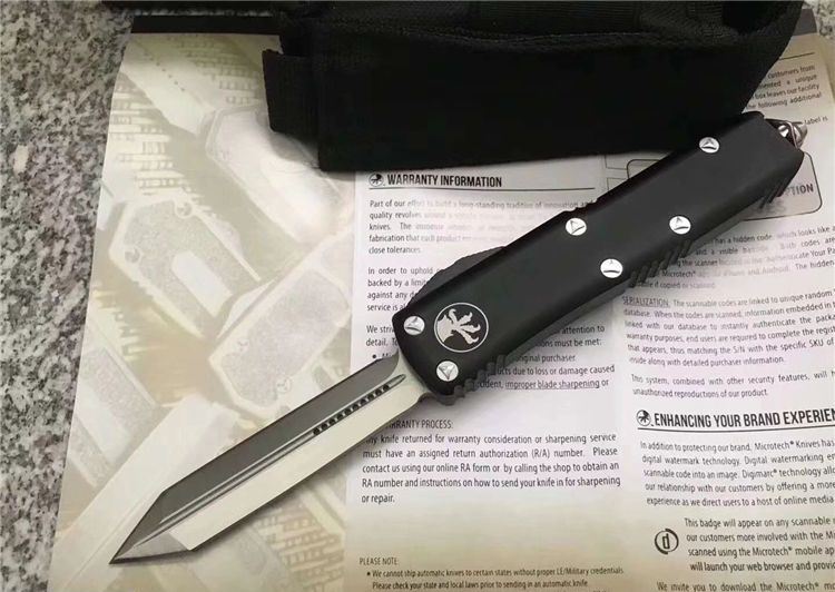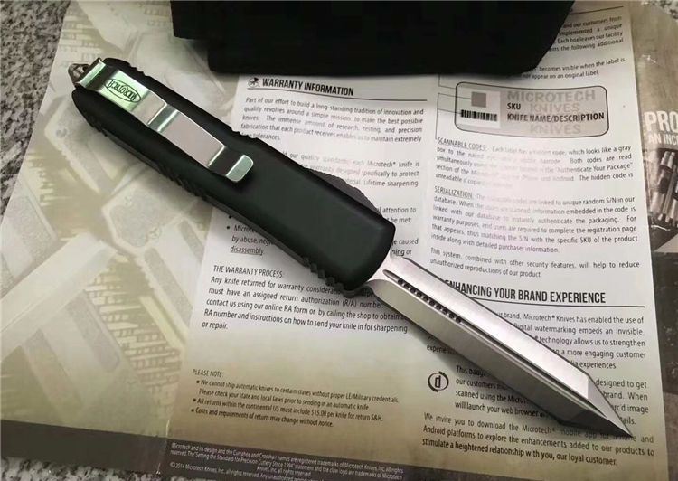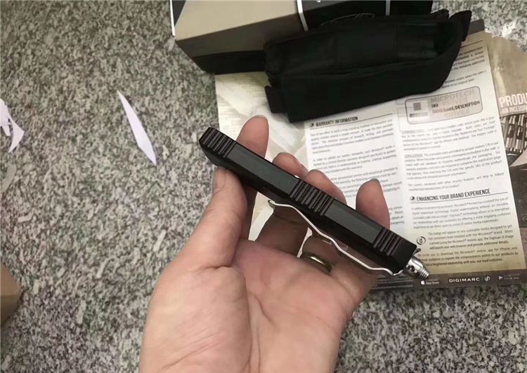 Microtech微技术UTX85直跳刀 总 长:20cm 刀 片长度:8cm 刀 片厚度:4mm 刃 材:D2 手 材:铝 硬 度:58-59HRC 净 重:97克 包 装:彩盒