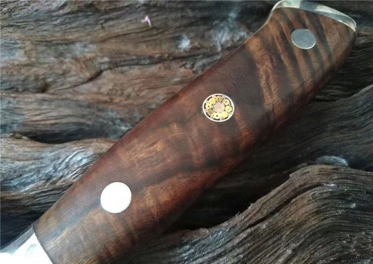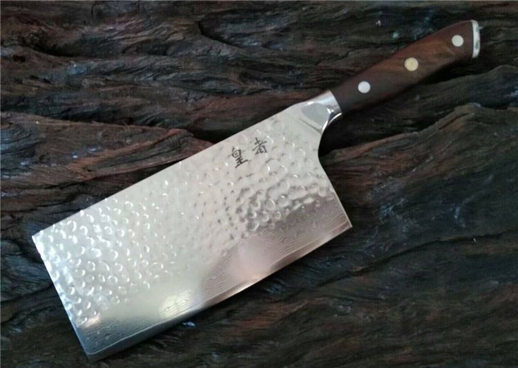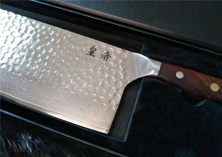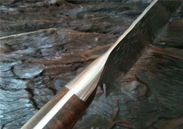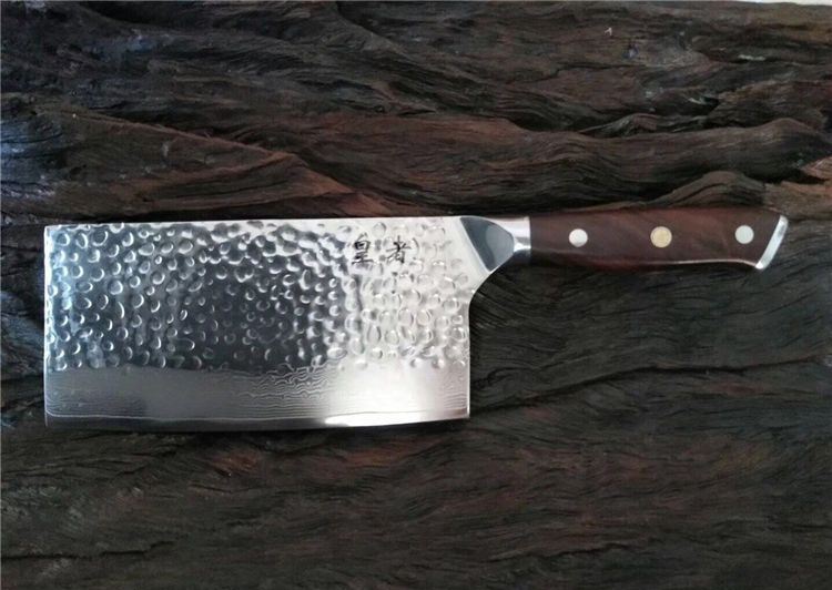 皇者大马士革沙漠铁木菜刀 全 长:320mm 刃 长:180mm 刃 宽:90mm 刃 厚:3mm 刃 材:VG-10大马士革钢 柄 材:沙漠铁木 硬 度:58-60HRC 表 面:锻打大马士革原纹 其 他:配礼品盒