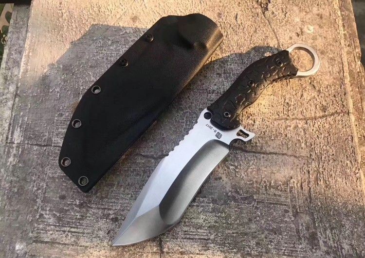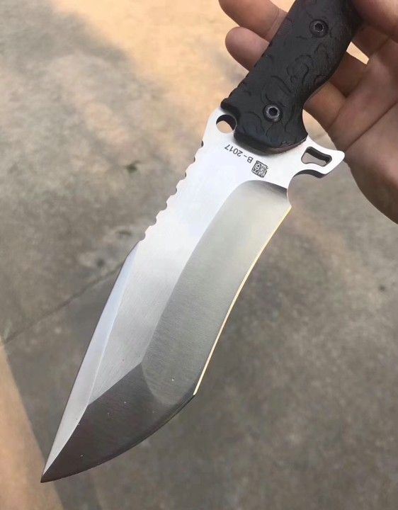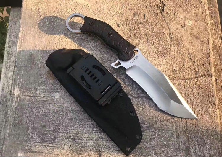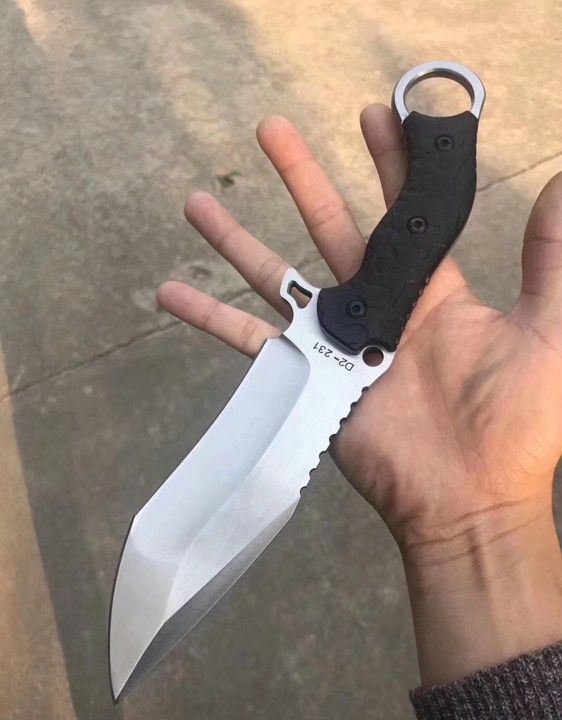 猎狐者直刀 总长:29cm 刃长:14cm 刃厚:6MM 刃宽:4.5cm 钢材:D2钢 硬度:60—61HRC,真空热处理 柄材:黑色G10 表面处理:灰黑石洗与砂光效果 刀套:战术K鞘,+皮带夹子,可以改装绑腿! 包装:硬盒子包装!此刀是一款非常实用型户外求生直刀