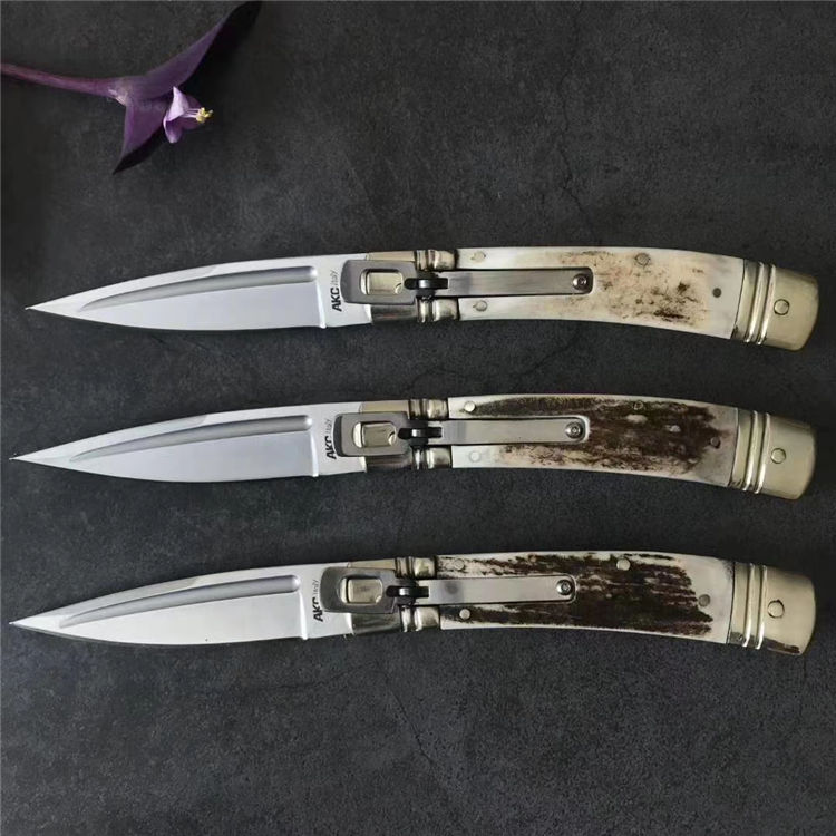 2017新款意大利黑手党鹿角柄AKC跳刀