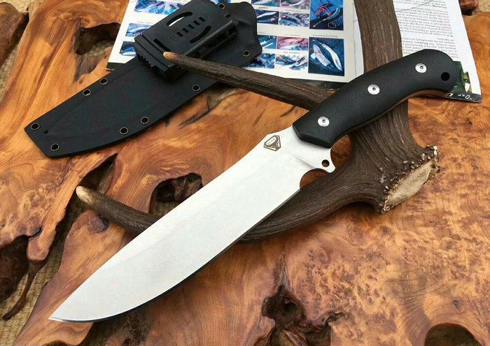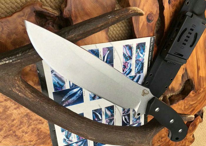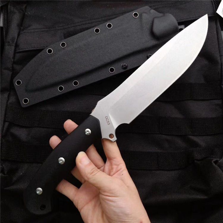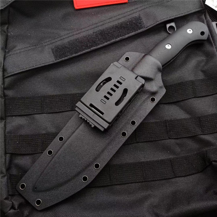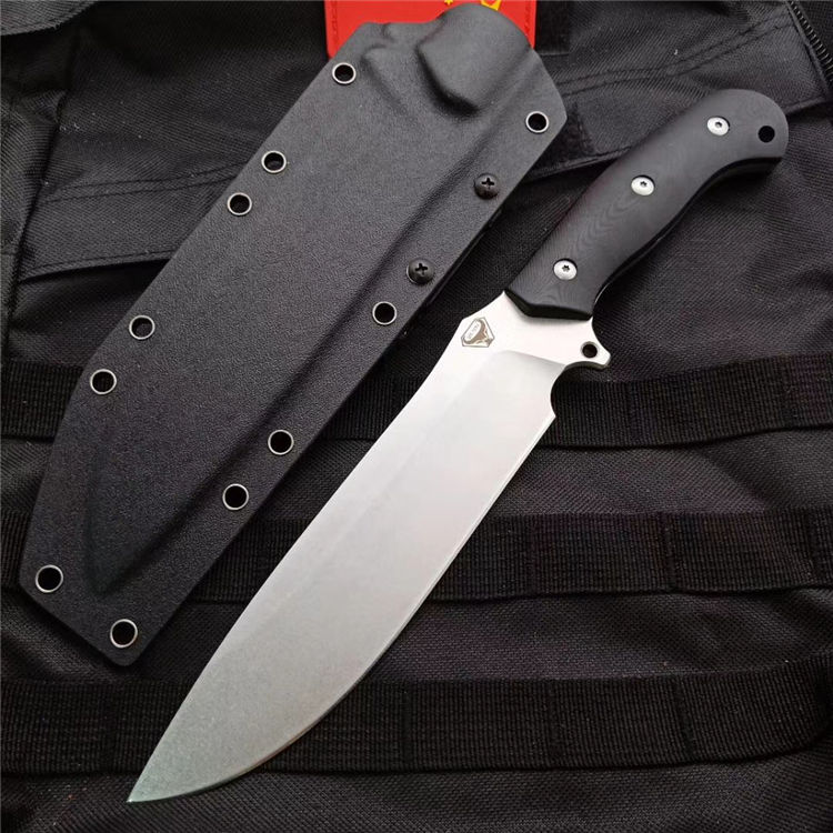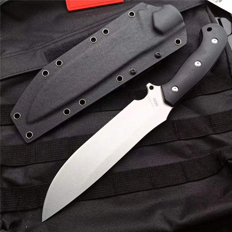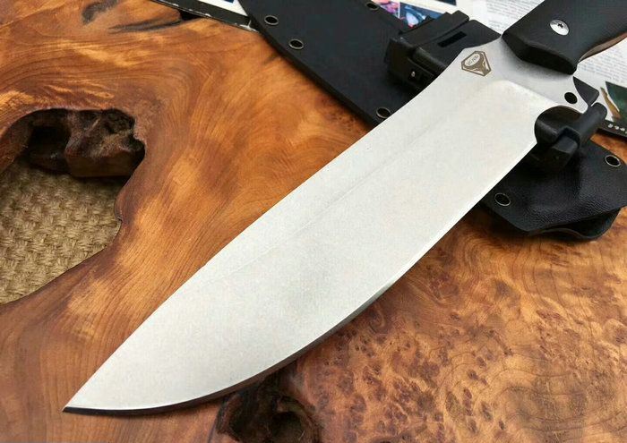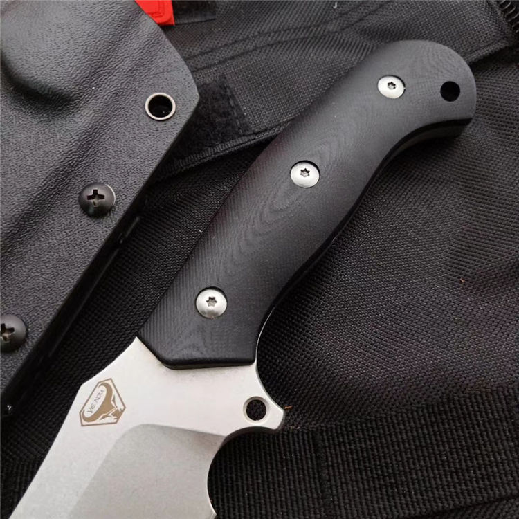 野牛二代直刀 全 长:31.5CM 刃 长:19CM 柄 长:12.3CM 刃 宽:42mm 刃 厚:5.5mm 刃 材:DC53 重 量:750克 刀 鞘:进口战术K鞘2.0厚 表 面:石洗 柄 材:一体钢黑红G10 热处理:真空油淬 硬 度:60HR
